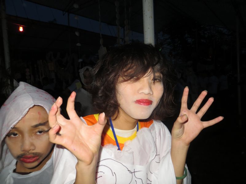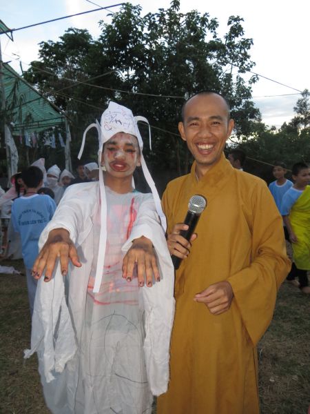 Buổi chiều, khi cầu vồng xuất hiện, hoàng hôn dần buông, thầy trò của khóa tu lại thiết lễ cúng thí thực cô hồn để trải tỏ lòng từ của mình đến thế giới u linh. Sau khi cúng cho người đã khuất, Hội chợ Âm Phủ được khai mạc để phục vụ bữa cơm chiều cho Khóa sinh. Hình ảnh của những Diêm La quỷ vương, Hắc Bạch – Vôi Thường hay yêu ma quỷ quái được các bạn Tình nguyện viên và khóa sinh hóa trang để nhắc nhở những bạn trẻ về sự vô thường của cuộc đời, và khuyên răn các bạn tránh các việc ác, làm những điều lành để không phải sa đọa vào những đường xấu ác sau này. Trong ánh nến lập lòe, các khóa sinh tự tìm món ăn mà mình khoái khấu trong sự thích thú, vui nhộn.