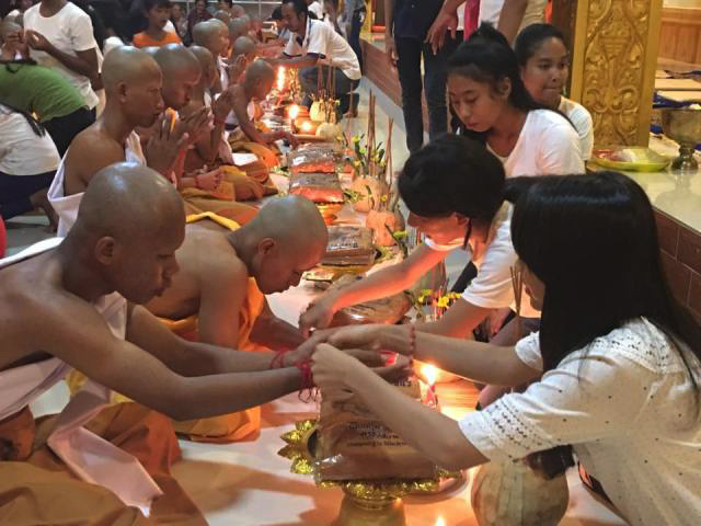 Phụ huynh học sinh cũng tất bật lũ lượt kéo đến chùa tham dự khóa tu Xuất gia gieo duyên (XGGD) và báo hiếu cha mẹ tổ chức vào sáng Thứ Sáu 7/7/2017 mà đêm trước đó nhà chùa cũng đã tổ chức 2 buổi lễ nhỏ chuẩn bị cho các em xuất gia là lễ Chon-day-nek (lễ buộc dây bao hàm hai ý nghĩa trong cuộc sống của kiếp con người là bị trói buộc bởi nhiều thứ ở thế gian, kế đó là cha mẹ muốn chúc phúc đến cho con cái).