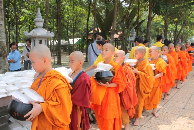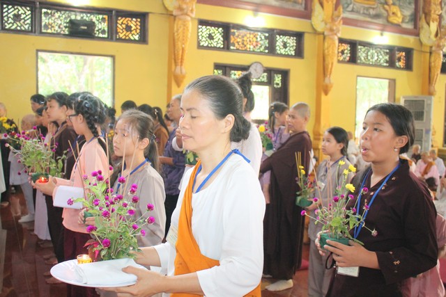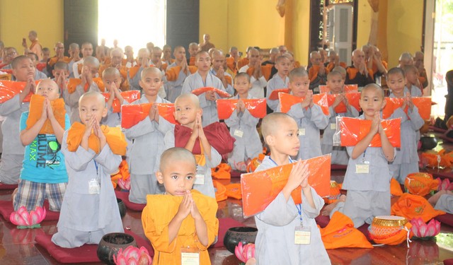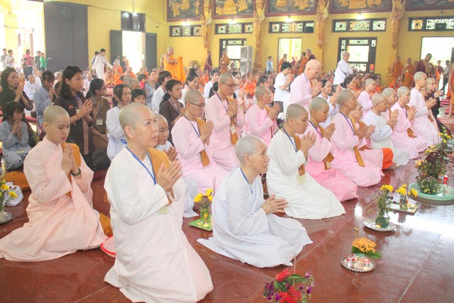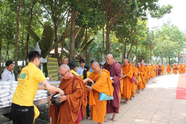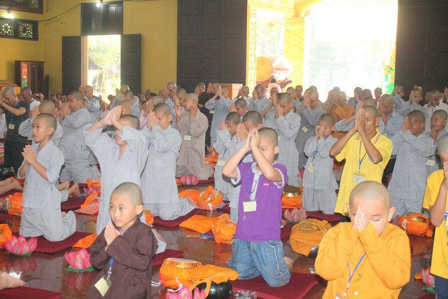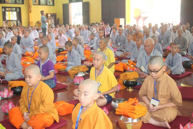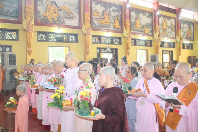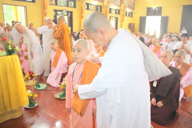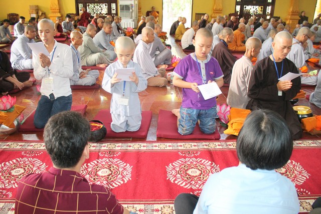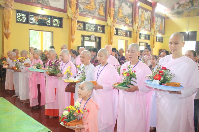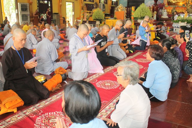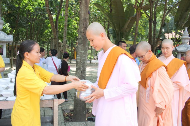 Sau nghi thức thọ trì tam quy ngũ giới, tọa thiền mười phút, chư Tăng cử hành nghi thức xuất gia gieo duyên, khóa kinh cầu nguyện phúc chúc phúc lành. Theo sự dẫn dắt của TT.Viện chủ, đại chúng thiền hành, trì bình khất thực và thụ trai.