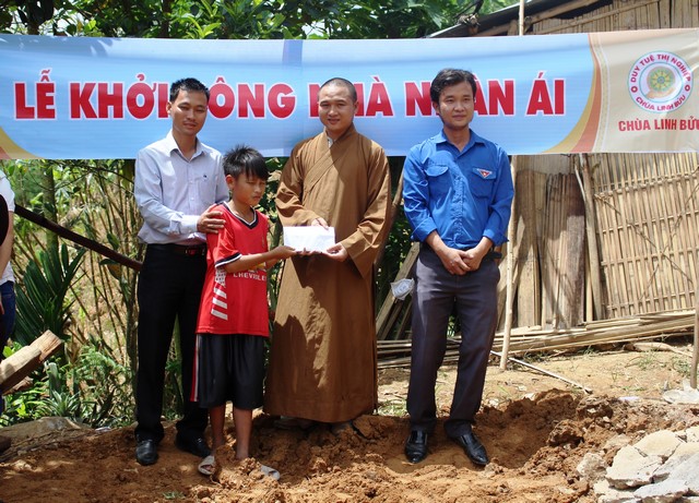 Dịp này, ĐĐ.Thích Viên Hải, trụ trì chùa Linh Bửu cùng quý phật tử, các nhà hão tâm đã trao tặng quà phẩm và ủng hộ 15 triệu đồng tiền mặt để cùng với Đoàn thanh niên Huyện đoàn huyện Nam Trà My dựng nhà nhân ái cho em Hùng.