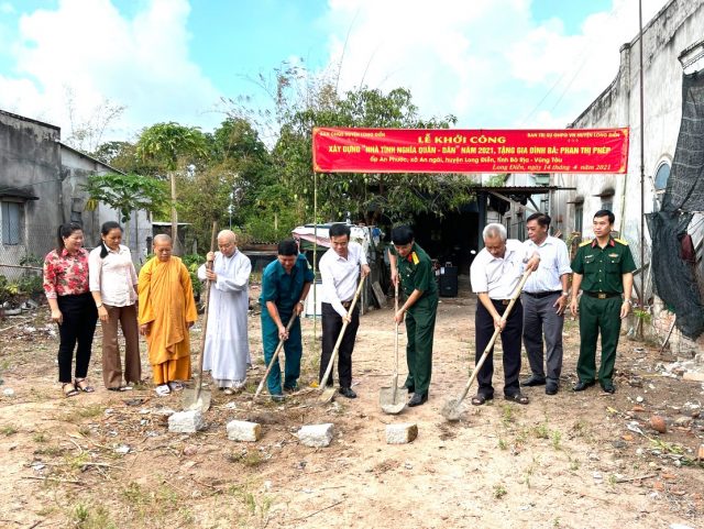 Ngày 14/4, Ban CHQS huyện Long Điền phối hợp với Ban Trị sự Giáo hội Phật giáo Việt Nam huyện tổ chức lễ khởi công xây dựng “Nhà tình nghĩa quân – dân” cho gia đình bà Phan Thị Phép (ấp An Phước, xã An Ngãi), có hoàn cảnh khó khăn về nhà ở.