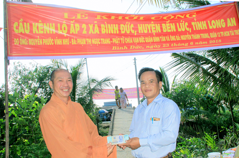 Sáng ngày 23 tháng 06 năm 2017(nhằm 10/05/Mậu tuất), tại xã Bình Đức, huyện Bến Lức, tỉnh Long An, Ban trị sự GHPGVN tỉnh Long An và đơn vị tài trợ phối hợp UBND xã Bình Đức tổ chức khởi công 2 cầu giao thông nông thôn ấp 2, với tổng số tiền trên 130 triệu đồng.