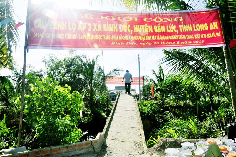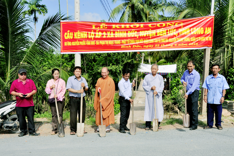 Sáng ngày 23 tháng 06 năm 2017(nhằm 10/05/Mậu tuất), tại xã Bình Đức, huyện Bến Lức, tỉnh Long An, Ban trị sự GHPGVN tỉnh Long An và đơn vị tài trợ phối hợp UBND xã Bình Đức tổ chức khởi công 2 cầu giao thông nông thôn ấp 2, với tổng số tiền trên 130 triệu đồng.
