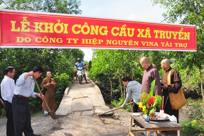 Được biết 4 cây cầu được xây dựng bằng bê tông cốt thép. Cây cầu tại xã Lương Bình do Sư cô TN. Diệu Thiện chùa Hưng Nghiêm Nam KaLi Hoa Kỳ tài trợ. Hai cây cầu tại xã Truyền do Hòa Thượng Thích Phước Toàn, chư Tăng chùa Vạn Đức Tp.HCM và công ty Hiệp Nguyên Vina huyện Bến Lức tài trợ; cây cầu Ông Hiệu tại xã Long Hiệp do chú Tâm tại địa phương tài trợ. Tổng kinh phí cho 4 cây cầu là 600 triệu đồng.