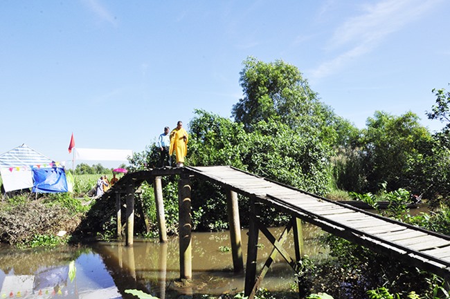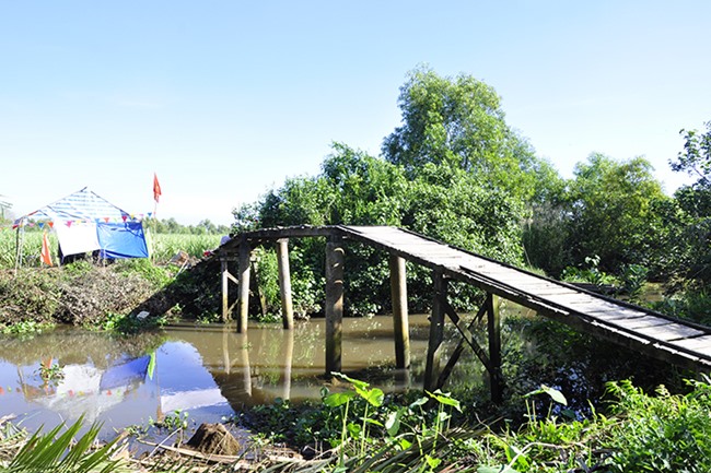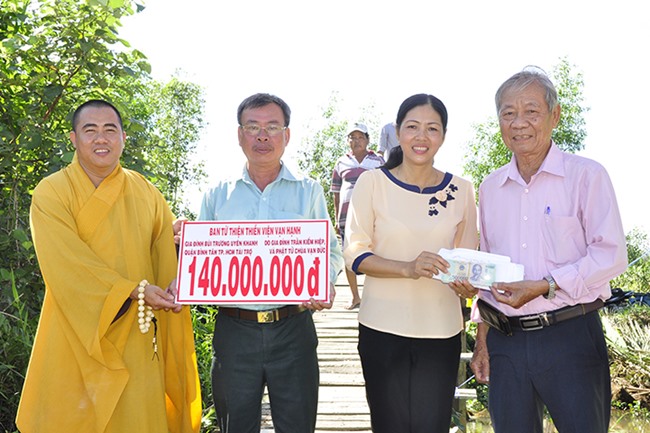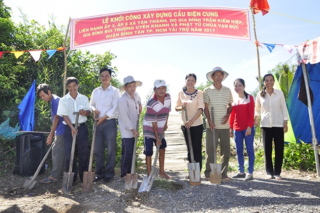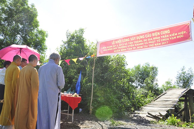 Được biết, cây cầu được xây dựng bằng bê tông cốt thép, chiều dài 30 m, ngang 2,6 m, tổng kinh phí 140 triệu đồng do hai gia đình Phật tử Bùi Trương Uyên và gia đình Trần Kiếm Hiệp tài trợ.