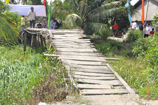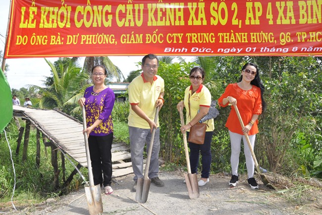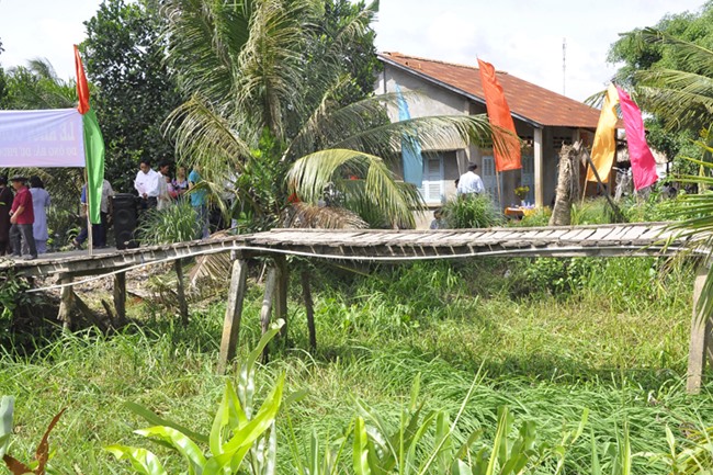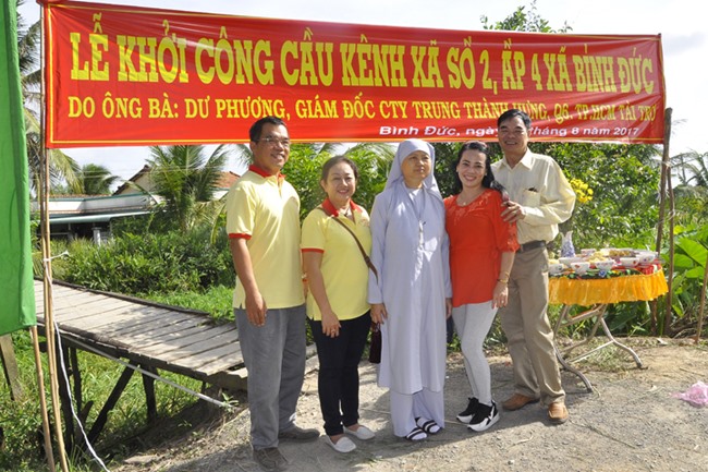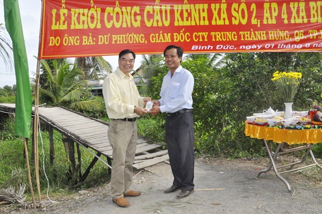 Được biết, cây cầu được xây dựng bằng bê tông cốt thép, chiều dài 26 m, ngang 2,6 mét, tổng kinh phí 120 triệu đồng do Ông, bà Dư Phương Cty Tung Thành Hưng, Quận 6, TP. HCM tài trợ.