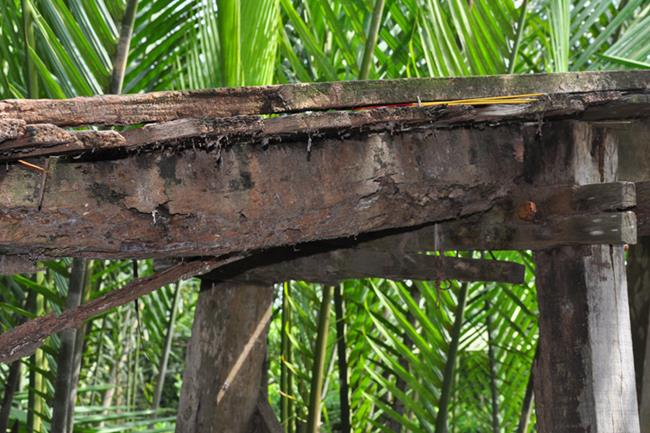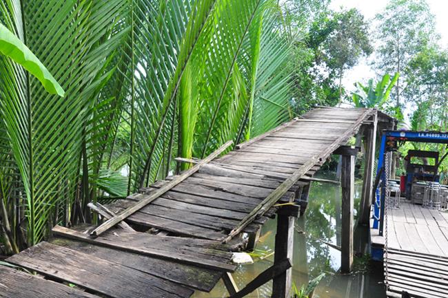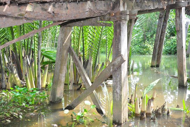 Cầu Rạch Sắn 1 nối ấp 4 và ấp 5 đã xuống cấp, hư hỏng không đảm bảo an toàn cho nhân dân và học sinh đi lại.