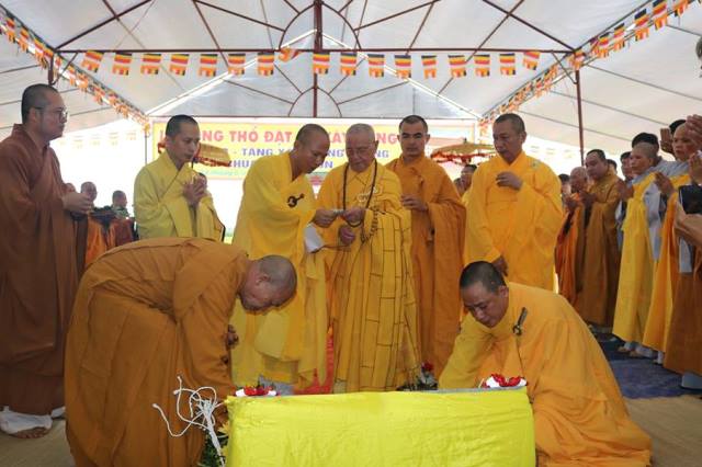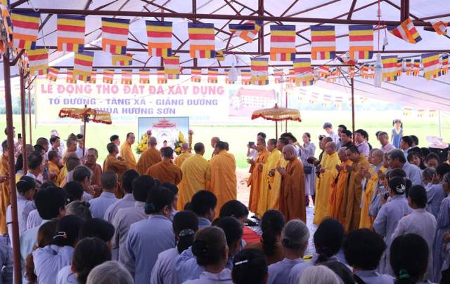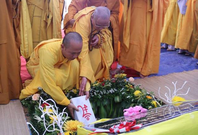 Tại buổi lễ, Chư tôn đức đã niêm hương, sái tịnh và đặt đá khởi công xây dựng công trình trong tiếng niệm kinh, chú nguyện của Chư tôn đức chứng minh và Phật tử.