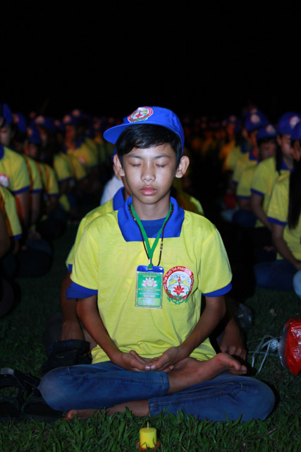 Trước khi chương trình thắp nến Hoa đăng, các trại sinh đã được sự hướng dẫn 15 phút thiền và phương thức thực hành thiền cho TT.Thích Bửu Chánh – UVTT HĐTS – Viện chủ TV Phước Sơn trực tiếp hướng dẫn.