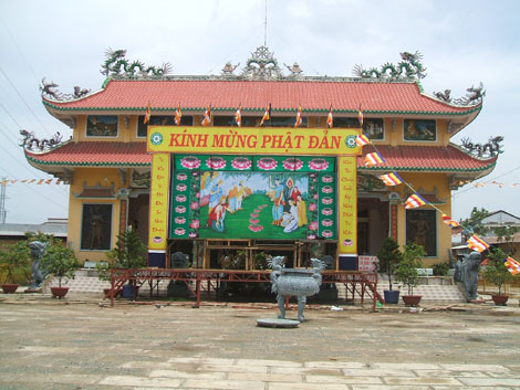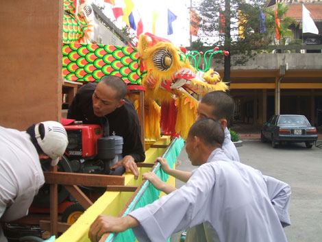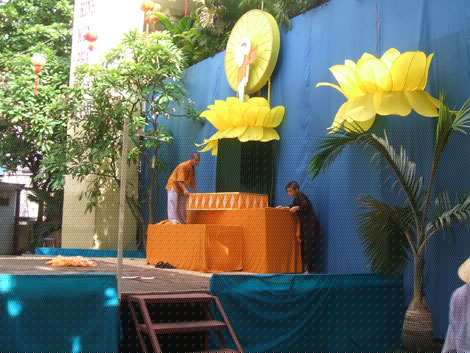 Chuẩn bị lễ đài Phật đản tại chùa Giác Lâm