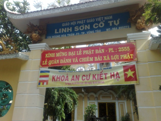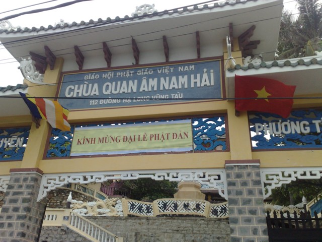 Chùa Hoa Nghiêm Phường 6 Đường Trần Xuân Độ, Tịnh Thất Phước Huệ Đường Trần Xuân Độ Phường 6,Quan Âm Phật Đài Phường 2 TP Vũng Tàu,Tịnh Thất Pháp Linh Đường Trần Xuân Độ Phường 6 TP Vũng Tàu, Quan Âm Nam Hải Đường Hạ Long Phường 2 là ngôi chùa xây rất quy mô tráng lệ nhưng cũng chỉ có cây cờ Phật fiáo và băng rôn sơ sài trước cổng chùa…