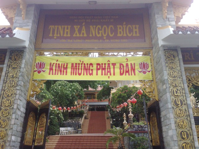 Chùa Bình Sơn P6 Đường Lê Lơi Phường 6, Tịnh Xá Ngọc Hương Phường 2 Đường Đinh Tiên Hoàng,Thích Ca Phật Đài Phường 5 Đường Trần Phú TP Vũng Tàu là trong nhưng ngôi chùa thắng tích du lich của Phật Giáo Vũng Tàu lẽ ra nên treo đèn hoa hoặc làm vườn Lâm Tùy Ni thêm nhưng chỉ có treo cờ.