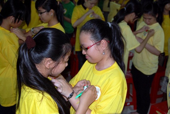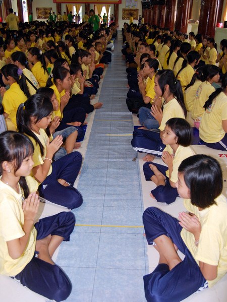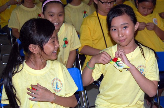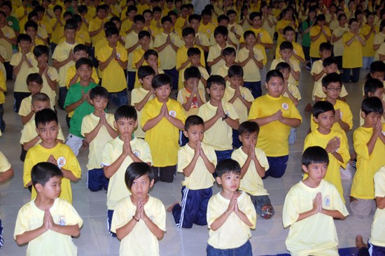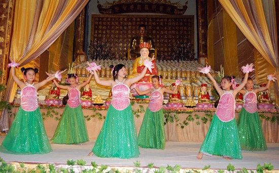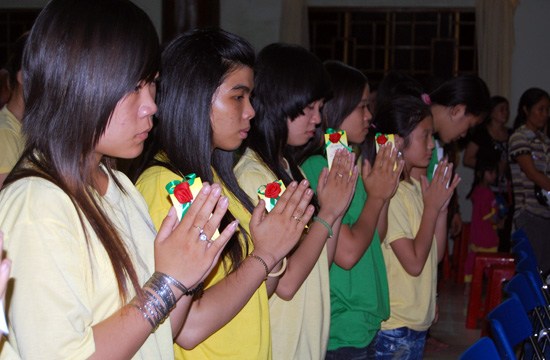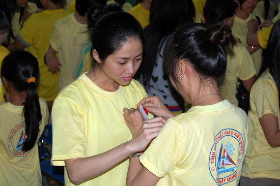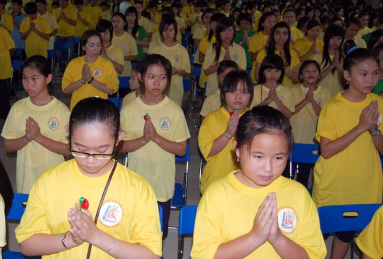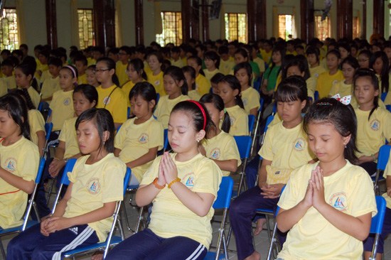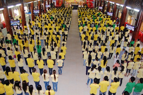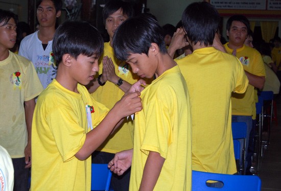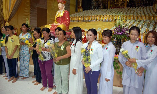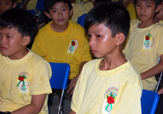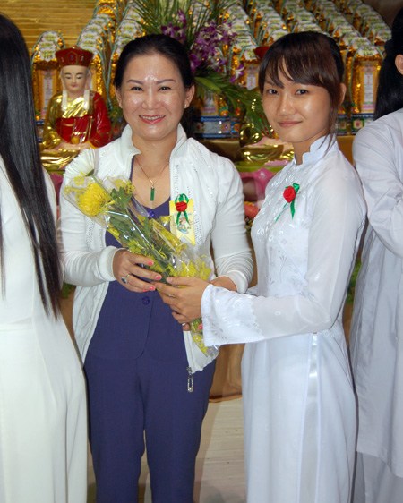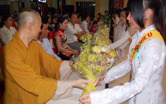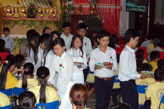 Sau một ngày tu học, khóa tu khép lại trong không khí ngập tràn cảm xúc với nghi thức cài hoa hồng và các bạn trẻ tặng hoa tri ân cha mẹ.