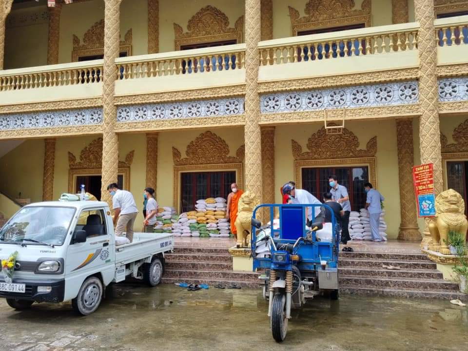 Với phương châm sống“Tốt đời đẹp đạo”, nhằm chung tay cùng chính quyền địa phương các cấp chăm lo đến đời sống tinh thần của người dân lao động từ các tỉnh và TP.HCM trở về quê hương sớm ổn định vượt qua khó khăn trong cuộc sống chịu ảnh hưởng dịch bệnh Covid -19 , chùa Sóc Xoài đã trao tại Thị trấn Sóc Sơn 100 phần, xã Sơn Kiên 100 phần, mỗi hộ gia đình nhận 10kg gạo.