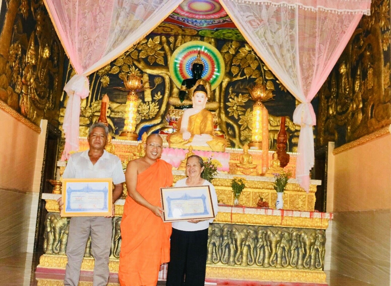 ĐĐ. Danh Út – Chủ tịch Hội ĐKSSYN TP. Rạch Giá, tỉnh Kiên Giang, Trụ trì chùa KeoMunìVaSà Thôn Dôn cho biết, nhằm ghi nhận và cảm niệm công đức các Phật tử tiêu biểu của chùa trong và ngoài tỉnh đã có sự đóng góp tích cực trong mọi công tác Phật sự 6 tháng đầu năm 2020 như: Trùng tu chùa,Từ thiện xã hội…, chư Tăng tại Bổn Tự, quyết định trao tặng hơn Bằng tuyên dương công đức đến các cá nhận tập thể Phật tử.