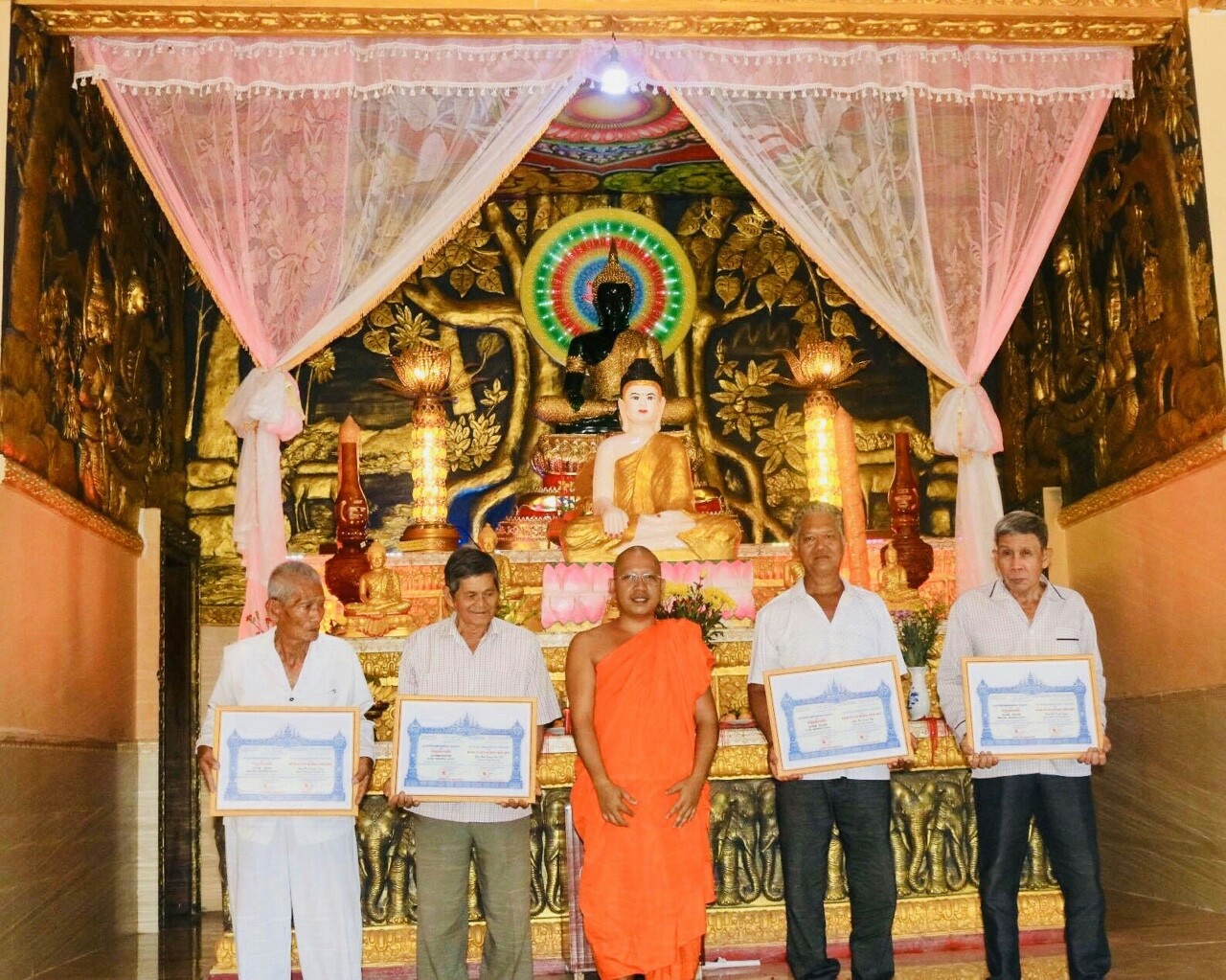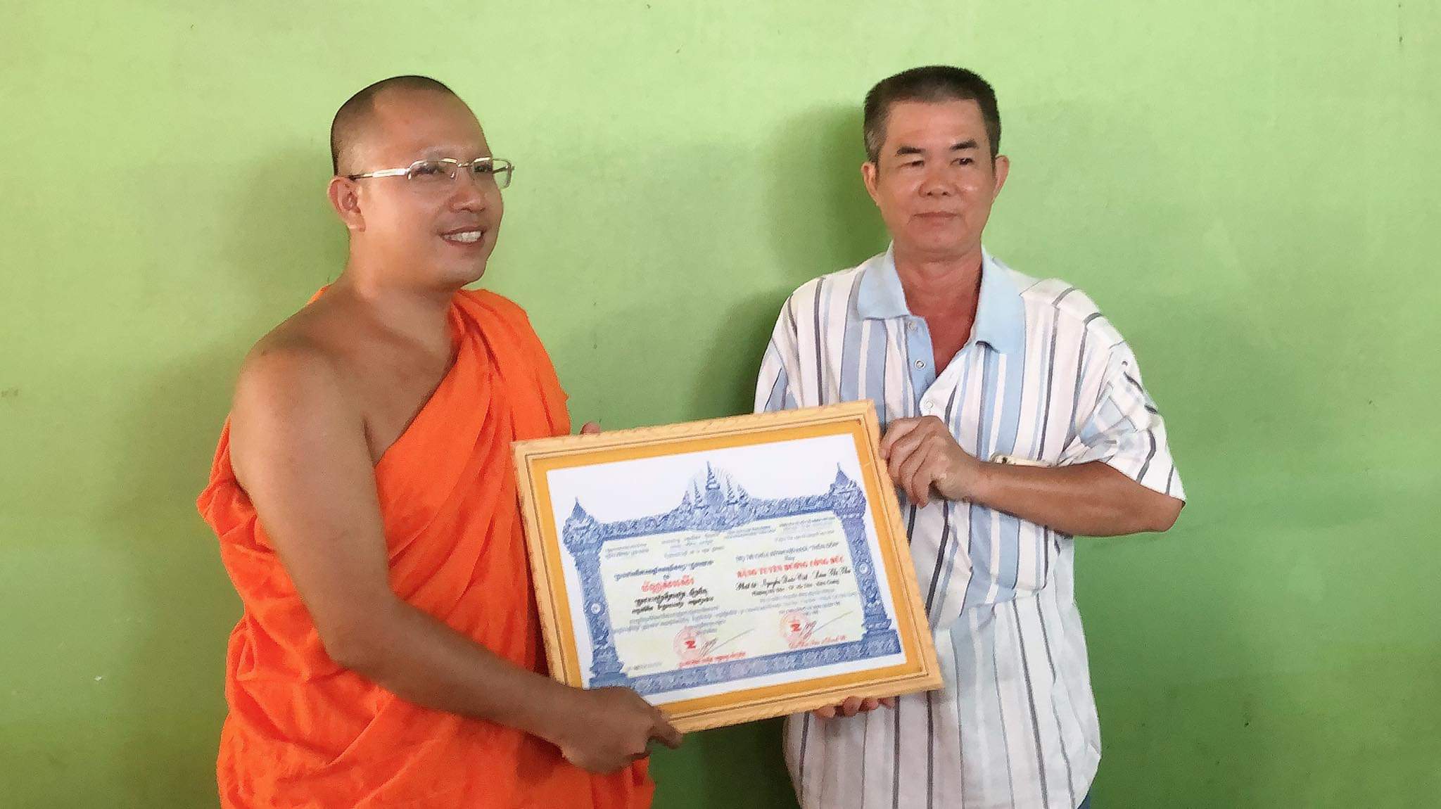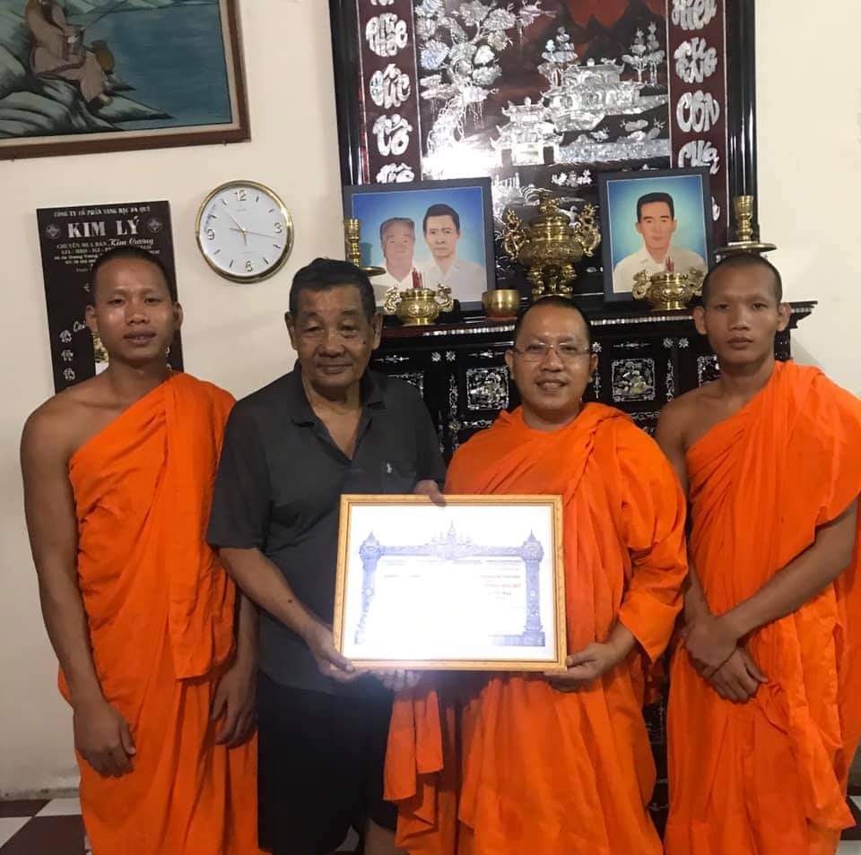 ĐĐ. Danh Út – Chủ tịch Hội ĐKSSYN TP. Rạch Giá, tỉnh Kiên Giang, Trụ trì chùa KeoMunìVaSà Thôn Dôn cho biết, nhằm ghi nhận và cảm niệm công đức các Phật tử tiêu biểu của chùa trong và ngoài tỉnh đã có sự đóng góp tích cực trong mọi công tác Phật sự 6 tháng đầu năm 2020 như: Trùng tu chùa,Từ thiện xã hội…, chư Tăng tại Bổn Tự, quyết định trao tặng hơn Bằng tuyên dương công đức đến các cá nhận tập thể Phật tử.