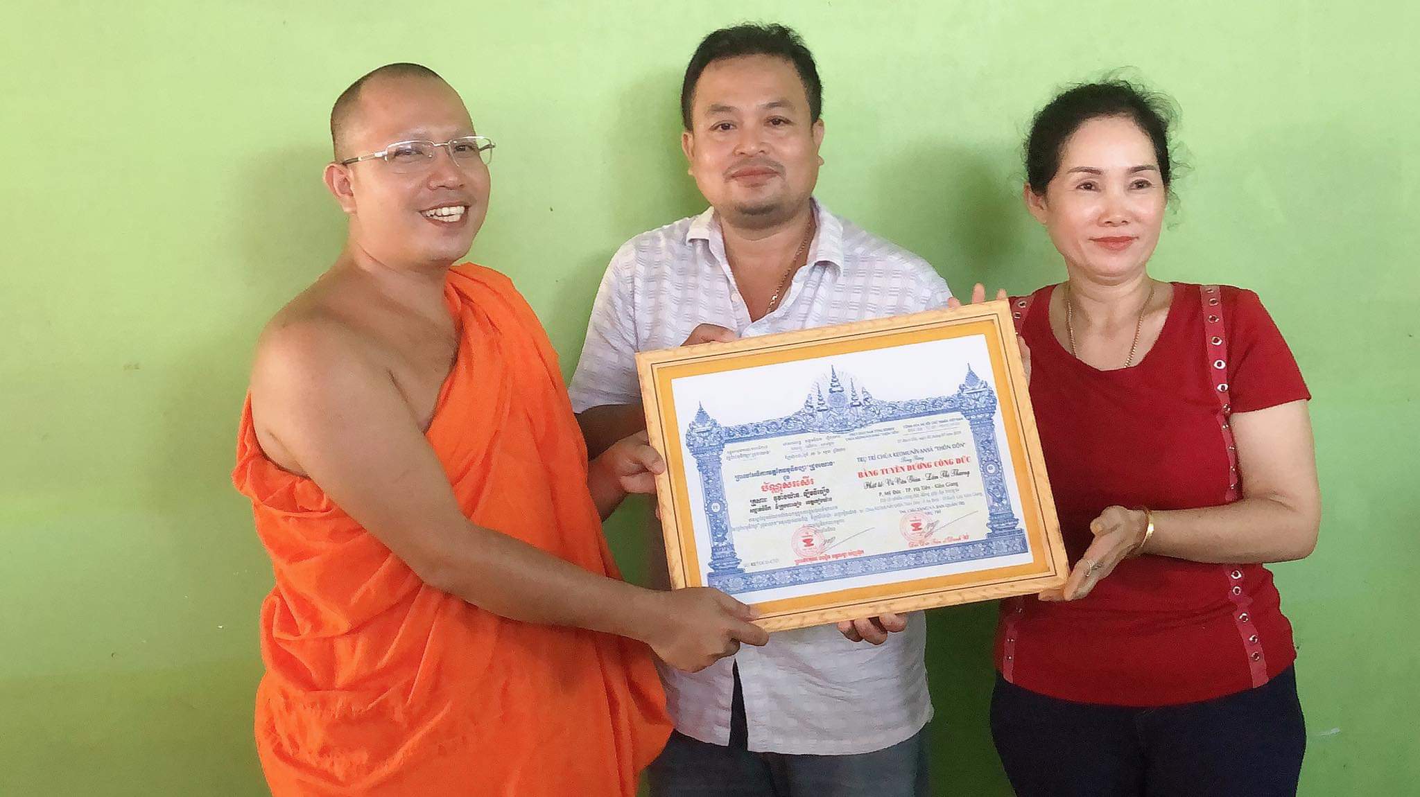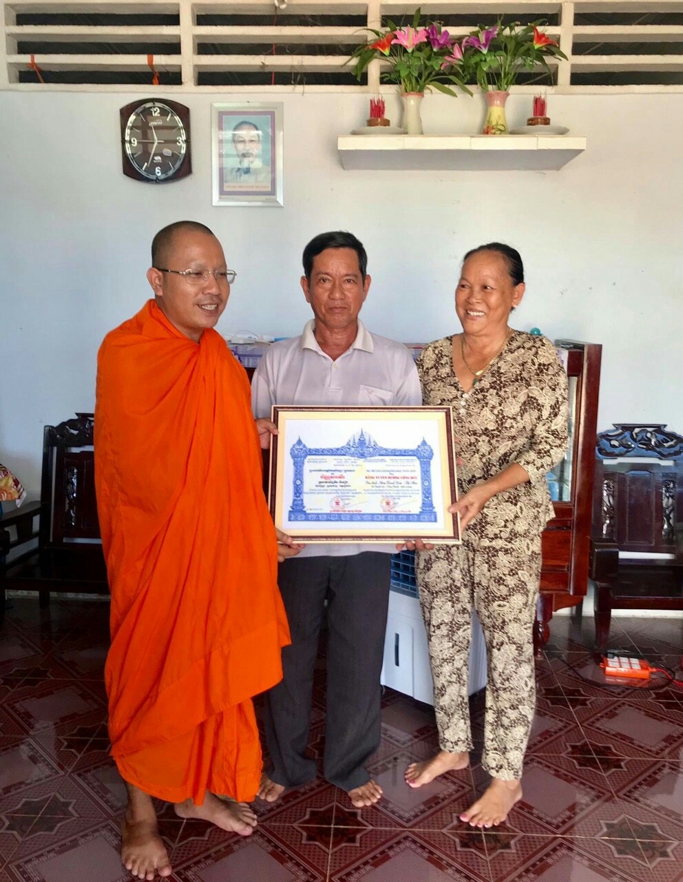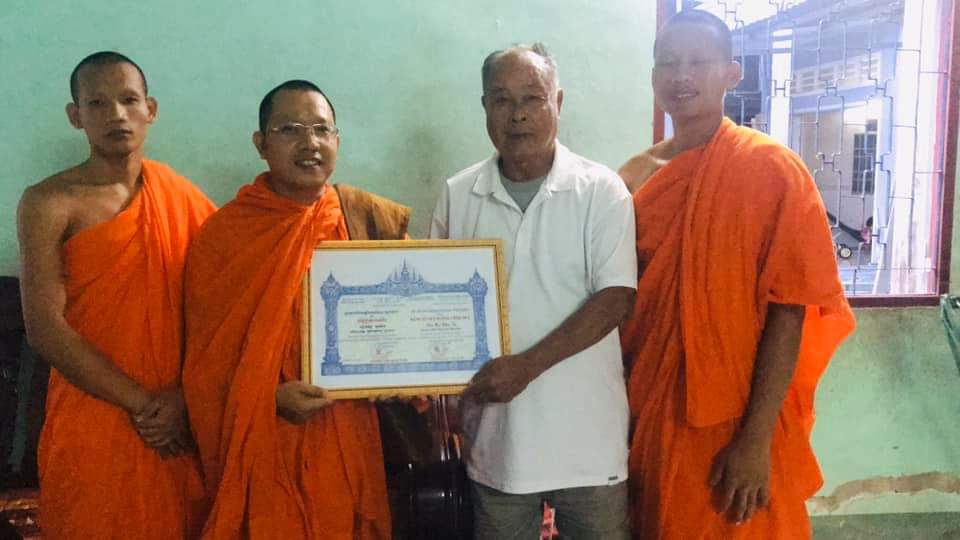 ĐĐ. Danh Út – Chủ tịch Hội ĐKSSYN TP. Rạch Giá, tỉnh Kiên Giang, Trụ trì chùa KeoMunìVaSà Thôn Dôn cho biết, nhằm ghi nhận và cảm niệm công đức các Phật tử tiêu biểu của chùa trong và ngoài tỉnh đã có sự đóng góp tích cực trong mọi công tác Phật sự 6 tháng đầu năm 2020 như: Trùng tu chùa,Từ thiện xã hội…, chư Tăng tại Bổn Tự, quyết định trao tặng hơn Bằng tuyên dương công đức đến các cá nhận tập thể Phật tử.