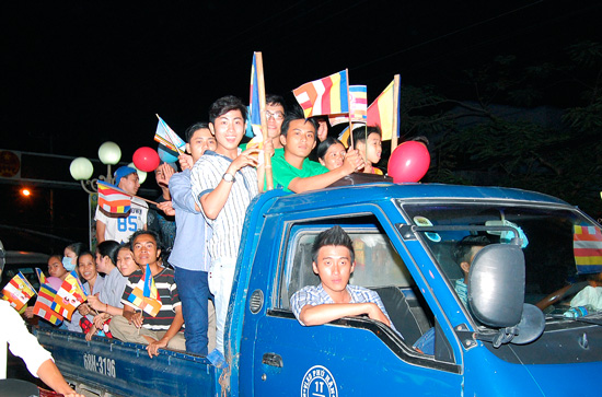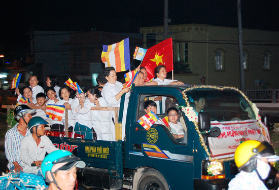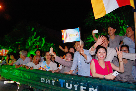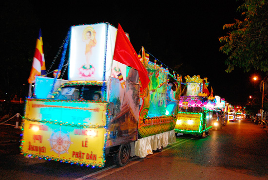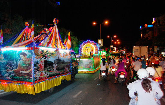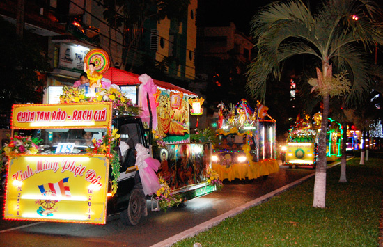Trang chủ Tin tức Kiên Giang: Diễu hành xe hoa kính mừng Phật đản PL.2558 Tin tức Kiên Giang: Diễu hành xe hoa kính mừng Phật đản PL.2558 Bởi (phattuvietnam.net) - 14 Tháng Năm, 2014 Facebook Twitter Google+ Pinterest WhatsApp Email Print Viber Theo chương trình tổ chức Đại lễ Phật đản (Vesak) PL.2558 – DL.2014 của Ban Trị sự GHPGVN tỉnh Kiên Giang, đêm 14/4 âm lịch (12/5/2014), hơn 30 xe hoa đã diễu hành quanh TP. Rạch Giá để kính mừng ngày đức Bổn Sư Thích Ca Mâu Ni đản sanh.