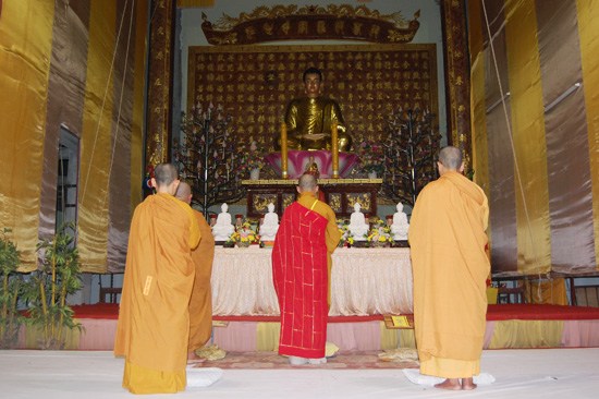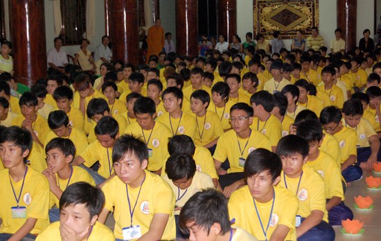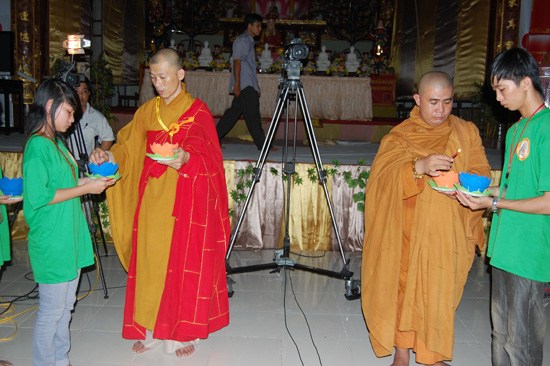 Trong đêm hoa đăng, ĐĐ. Thích Minh Nhẫn – trụ trì chùa Phật Quang, trưởng BTC khóa tu đã có thời pháp ngắn với chủ đề "Ơn nghĩa sinh thành" chia sẻ với các bạn trẻ.