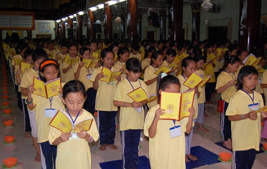 Các bạn trẻ đã tụng kinh cầu an, cầu phúc đức cho nhân loại, thành tâm hướng lòng về Tam bảo cầu ông bà, cha mẹ được bình an.