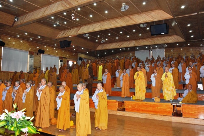 Hòa thượng Thích Minh Thiện tiếp tục giáo giới cho toàn thể giới tử. Hòa thượng giới thiệu khái quát quá trình hình thành giới luật. Trong 12 năm đầu, Đức Phật chỉ dạy đệ tử của Ngài sống theo tinh thần Lục hòa cộng trụ, chưa từng chế giới luật. Sau 12 năm, Phật lần lượt tùy theo sự sai phạm của đệ tử mà chế giới và dần hình thành đầy đủ giới luật cho hàng xuất gia và tại gia.