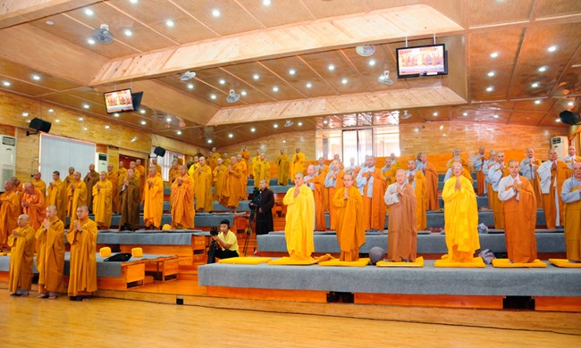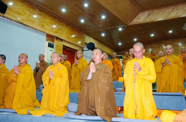 Với chủ đề “Sự tương quan giữa năm Uẩn và năm phần Pháp thân”, chư Tôn đức tăng, ni trụ trì đã được nghe những lời giáo huấn quý báu của Hòa thượng Chủ tịch HĐTS “Bằng tinh thần tích cực và truyền thống, sự hiện hữu của con người 5 Uẩn và cuộc đời là một môi trường, là phương tiện hữu hiệu để đạt được chân lý.