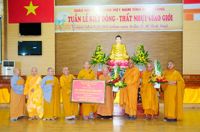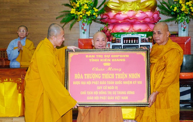 Dịp này, Ban Trị sự GHPGVN tỉnh Kiên Giang đã chúc mừng HT.Thích Thiện Nhơn tại Đại hội Phật giáo toàn quốc lần thứ VIII được toàn thể tăng, ni đại chúng tiếp tục tín nhiệm suy cử ngôi vị Chủ tịch HĐTS khóa VIII, nhiệm kỳ 2017 – 2022.