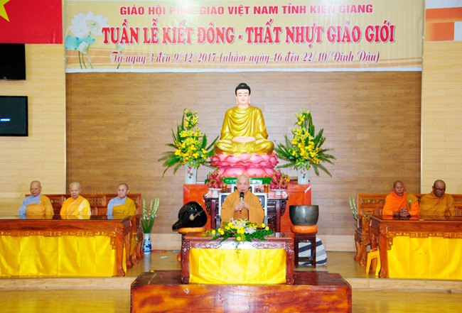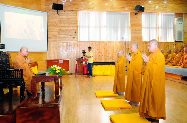 HT.Thích Thiện Nhơn cũng tán thán công đức chư Tôn đức lãnh đạo Ban Trị sự tỉnh và chư hành giả an cư đã thực hành theo lời Phật dạy, cùng nhau tu học trao dồi Giới – Định – Tuệ, làm tăng thêm mối đoàn kết, hòa hợp trong tăng đoàn.