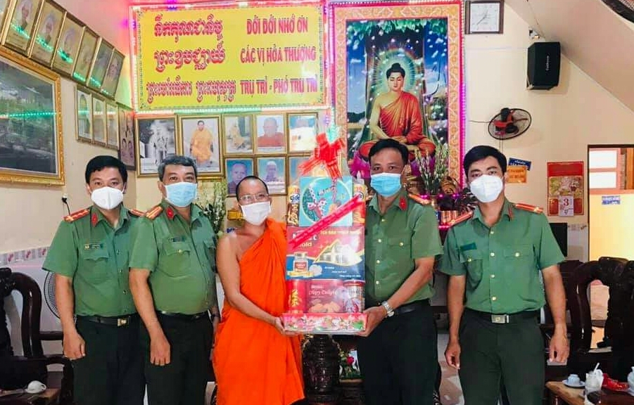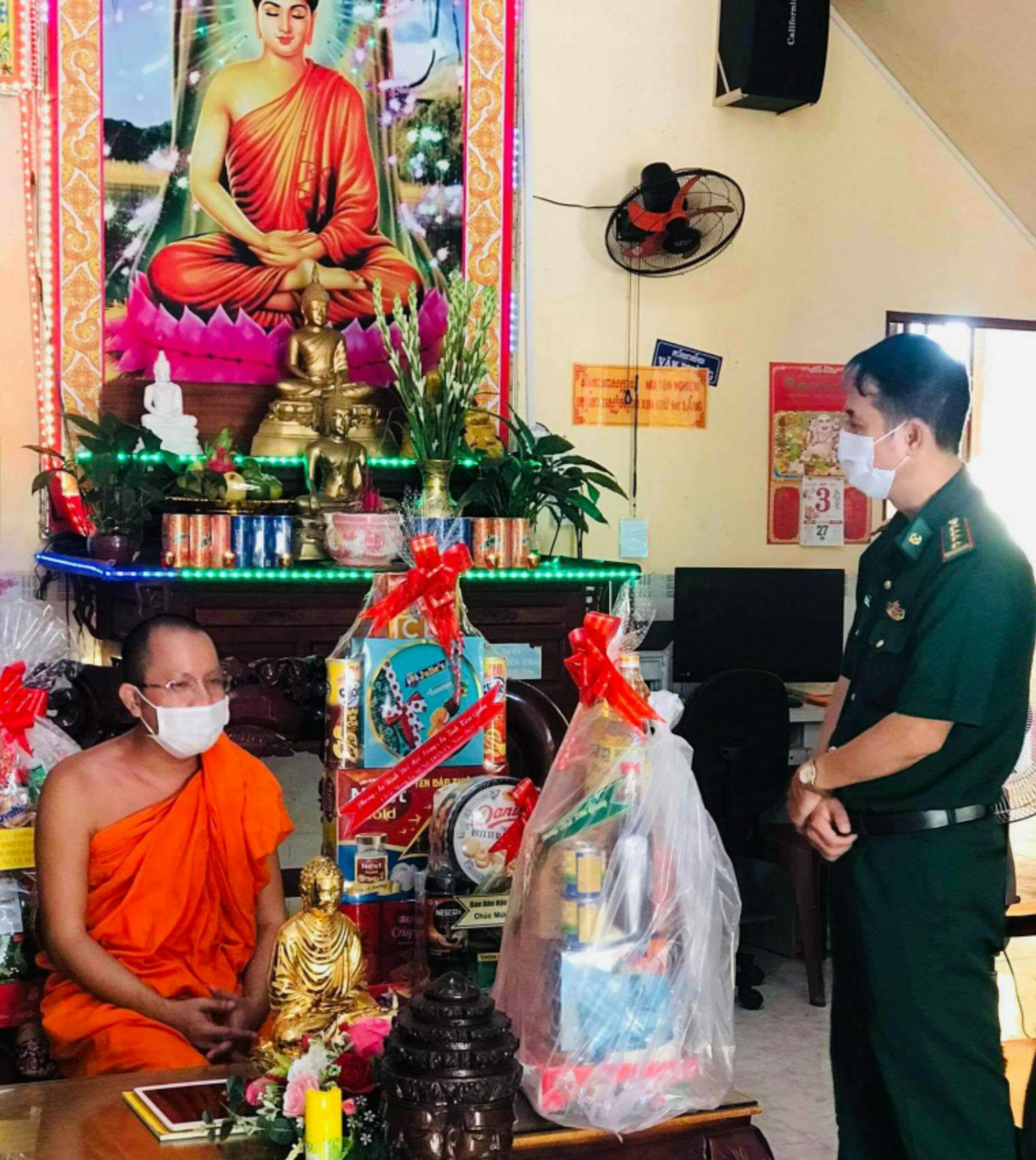 Tại nơi đến, lãnh đạo các đoàn ân cần gửi lời thăm hỏi sức khỏe và chúc mừng Lễ Sêne Đônta năm 2021 tốt đẹp nhất đến Đại đức Trụ trì, toàn thể chư Tăng, BQT và Phật tử. Đồng thời, mong muốn Đại đức tiếp tục tuyên truyền và vận động bà con Phật tử chấp hành tốt chủ trương của Đảng, chính sách Pháp luật của nhà nước, thực hiện nghiêm thông điệp 5K về công tác phòng, chống dịch bệnh Covid -19, đảm bảo ngày lễ diễn ra”Vui tươi, an toàn, tiết kiệm”.