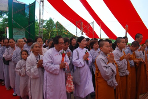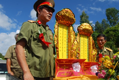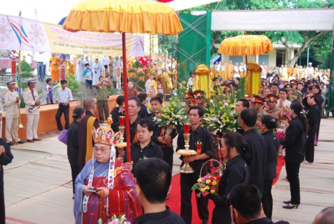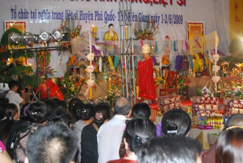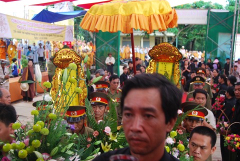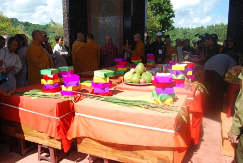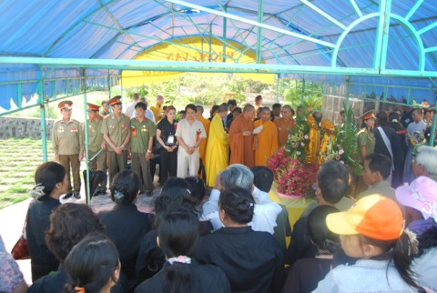 Chiều qua 1/6/2009, trong khuôn khổ của Đại lễ cầu siêu, sau các nghi thức tiếp linh, Phát tấu, cúng Phật và Bắc cầu triệu linh, khai phương phá ngục của Chư Tăng Phật giáo miền Bắc, Ban tổ chức Đại lễ Cầu siêu đã long trọng tổ chức viếng nghĩa trang liệt sỹ Nắm Đấm – nơi hiện đang tạm quàn di hài các liệt sỹ để rước hương linh các anh về lễ đài tại nghĩa trang liệt sỹ của Huyện.