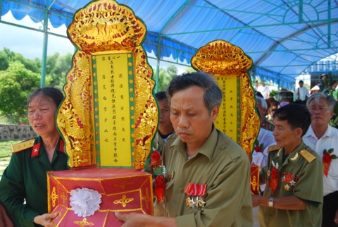 Trải qua một quãng đường dài hơn 30km trong sự trang nghiêm thành kính, phái đoàn đã rước vong về đến nghĩa trang huyện đảo.