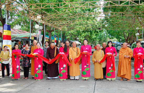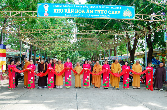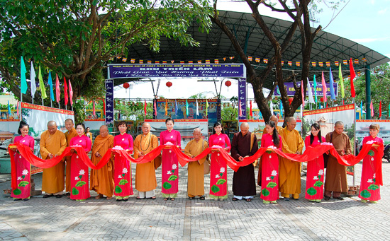 Tiếp đó, chư Tôn đức đã quang lâm lễ đài chính của Ban Trị sự tại công viên văn hóa An Hòa để cắt băng khánh thành và tham quan khu triển lãm hình ảnh các thành tựu Phật sự của Phật giáo Kiên Giang, văn hóa phẩm Phật giáo và khu văn hóa ẩm thực chay.
