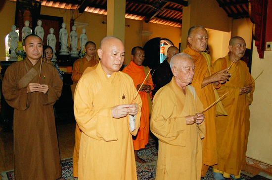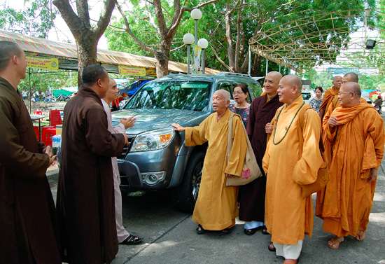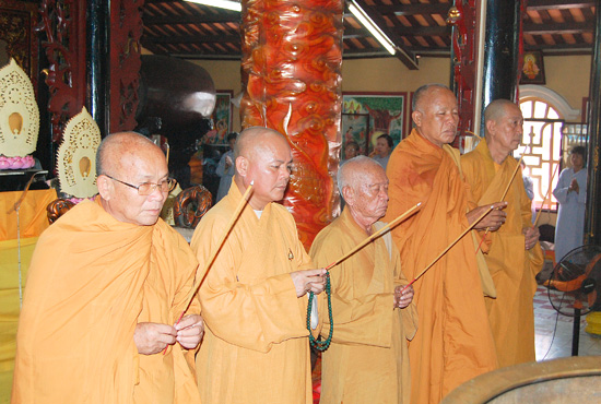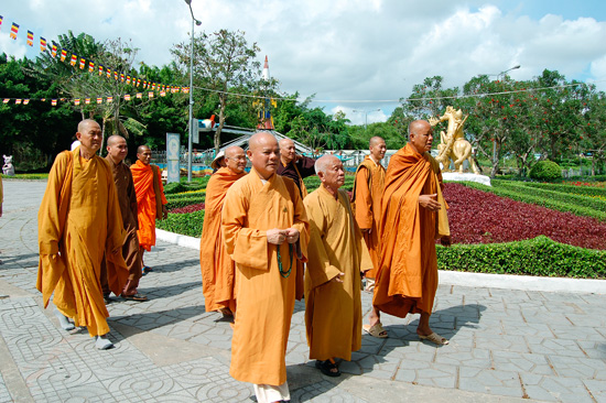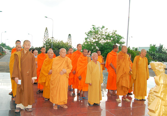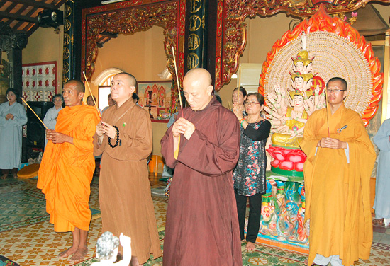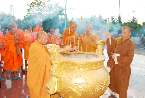 Trước thềm khai mạc Đại lễ, HT. Thích Huyền Thông, UV HĐTS TW GHPGVN, Phó ban Thường trực Ban Trị sự GHPGVN tỉnh Kiên Giang; HT. Thích Tấn Đạt, UV Thường trực HĐTS, Phó văn phòng 2 TW GHPGVN, Phó ban Thường trực BHP TW; HT. Thích Huệ Thông, UV HĐTS, Phó ban kiêm Chánh Thư ký BHP TW GHPGVN, Trưởng Ban Trị sự GHPGVN tỉnh Bình Dương cùng chư Tôn đức Thường trực Ban Trị sự GHPGVN tỉnh Kiên Giang đã đến chùa Tam Bảo (văn phòng Ban Trị sự tỉnh) thắp hương lễ Phật và cầu nguyện cho Đại lễ Phật đản tại Kiên Giang được diễn ra thành công tốt đẹp.