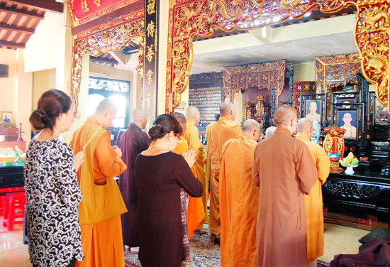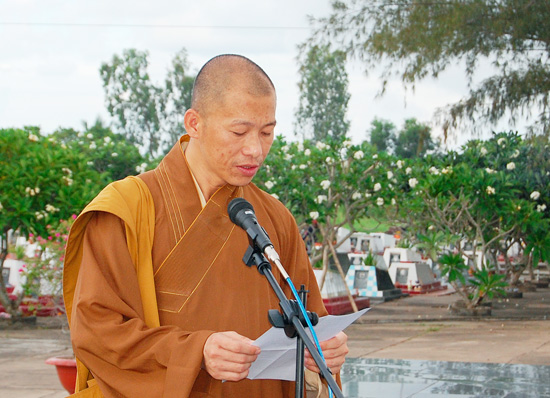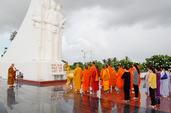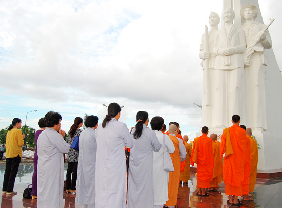Cũng trong sáng nay, tại nghĩa trang liệt sĩ tỉnh, chư Tôn đức Thường trực Ban Trị sự GHPGVN tỉnh, Tăng ni, Phật tử các tự viện tại TP. Rạch Giá đã đến đặt vòng hoa, thắp hương tưởng niệm chư hương linh các anh hùng liệt sĩ đã vị quốc vong thân.