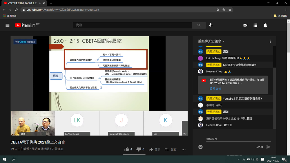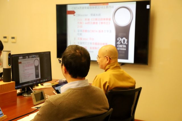 Trên hệ thống màn hình video, Hội nghị đã tập hợp gần 50 nhân sĩ trí thức, giới học thuật, giới phật giáo quan tâm đến sự phát triển của kinh điển điện tử Phật giáo, cùng theo dõi sự phát triển cũng như kế hoạch nâng cấp hệ thống đọc trực tuyến của CBETA. Hội nghị được truyền hình trực tiếp trên tiện ích YT.