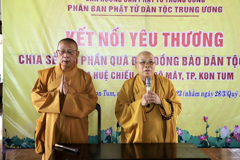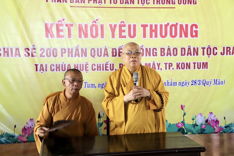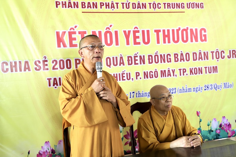 Thượng tọa Thích Quảng Tuấn, Ủy viên Thường trực Hội đồng Trị sự, Phó Trưởng ban Hướng dẫn Phật tử T.Ư, Trưởng Phân ban Phật tử Dân tộc TƯ phát biểu tại buổi trao quà