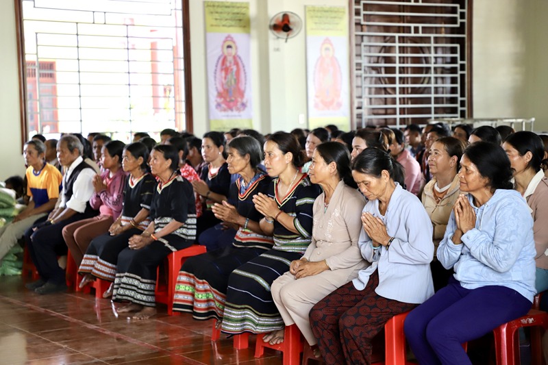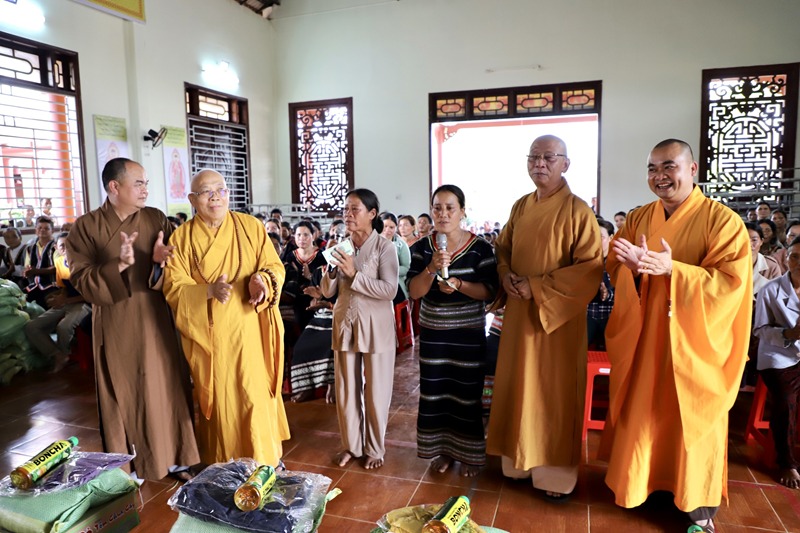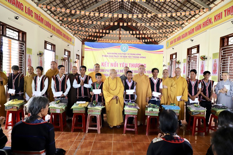 Tại buổi trao quà Chư tôn đức đã động viên đồng bào dân tộc Jrai trên tinh thần tương thân tương ái, mong muốn lan tỏa những giá trị tốt đẹp về tình đoàn kết, chia sẻ yêu thương đến đồng bào dân tộc thiểu số