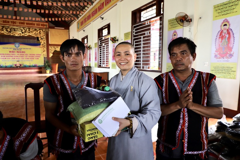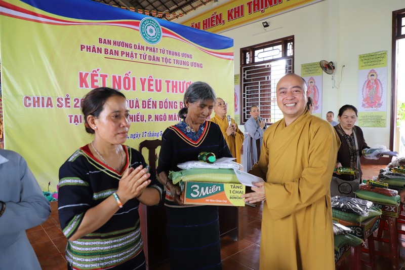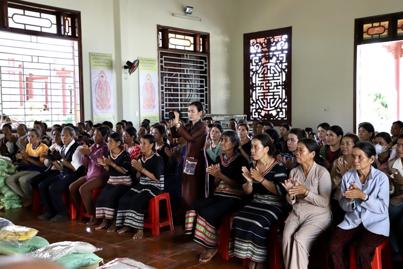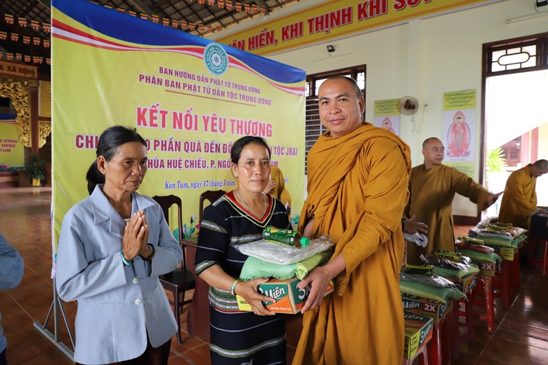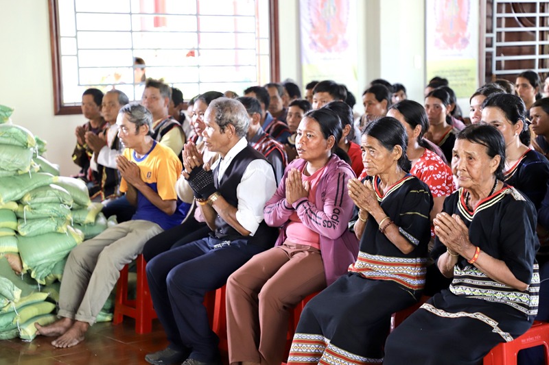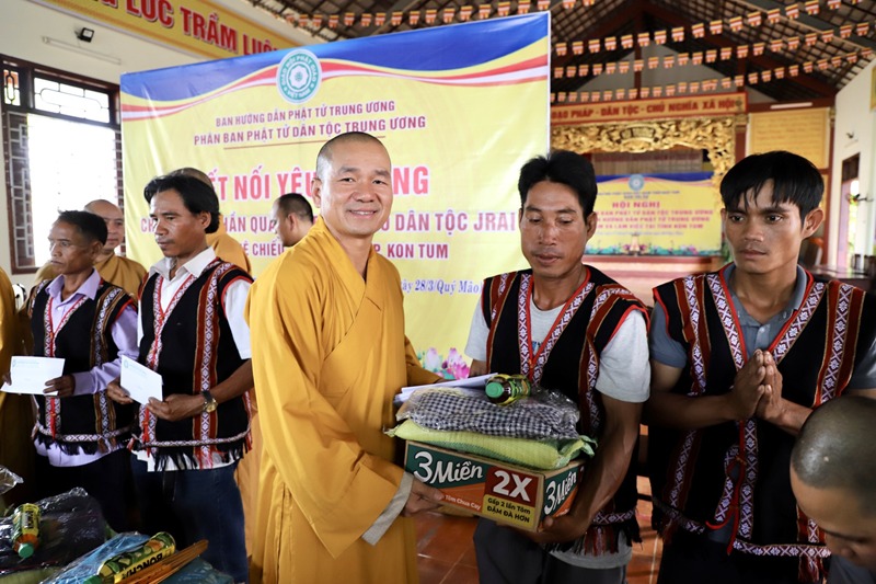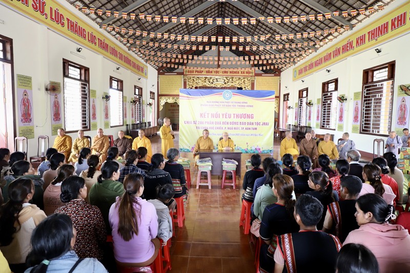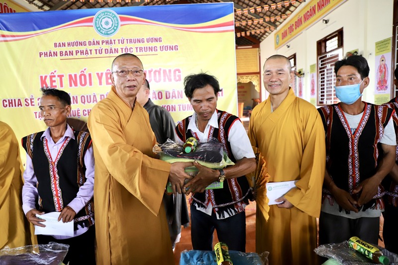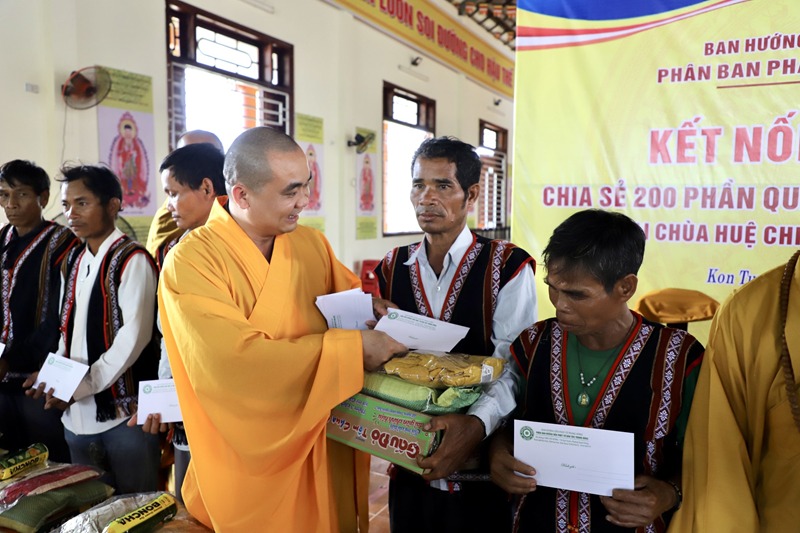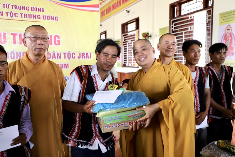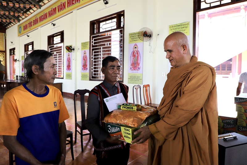 Tại buổi trao quà Chư tôn đức đã động viên đồng bào dân tộc Jrai trên tinh thần tương thân tương ái, mong muốn lan tỏa những giá trị tốt đẹp về tình đoàn kết, chia sẻ yêu thương đến đồng bào dân tộc thiểu số