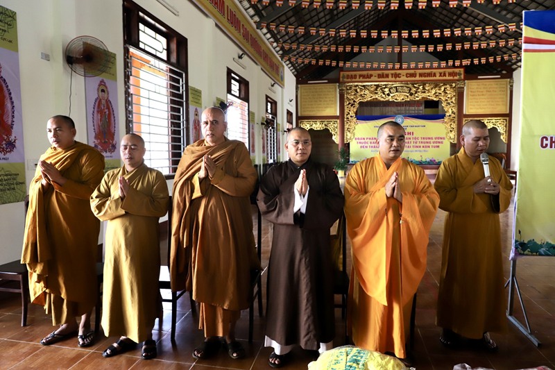 Dẫn đầu Chư tôn đức phái đoàn Phân ban PTDT TƯ có Thượng tọa Thích Quảng Tuấn, Ủy viên Thường trực Hội đồng Trị sự, Phó Trưởng ban Hướng dẫn Phật tử T.Ư, Trưởng Phân ban Phật tử Dân tộc TƯ cùng chư tôn đức, cư sĩ trong toàn PB PTDT TƯ.
