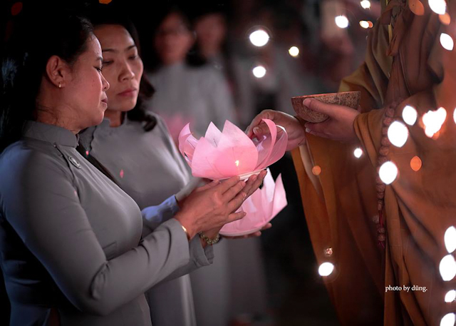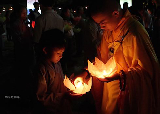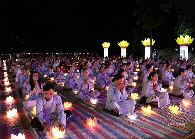 Hàng vạn trái tim như hòa cùng nhịp đập trong một bầu không khí trang nghiêm và thanh tịnh. Những ngọn nến lung linh huyền diệu được hàng Phật tử thắp sáng để dâng lên cúng dường chư Phật, ánh sáng ấy như xua tan đi đêm tối của si mê, giận hờn, ganh ghét, như xóa đi ranh giới của giàu nghèo, sang hèn, vui khổ, mở bày thế giới Cực Lạc giữa Ta Bà khổ đau. Ánh nến chiếu soi đưa con người trở về với tự tánh hiền lương vốn có, hiển bày tự tánh Phật Đà để vơi đi những muộn phiền của kiếp nhân sinh.
