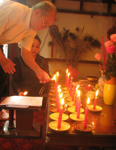 Sau khi được học những giáo lý của môn phái về việc tôn sư trọng đạo và những điều cấm kỵ trong môn phái, chúng tôi bước vào những bài học chữa bệnh đầu tiên. Trước mỗi buổi học, mỗi người đều nhận được một bộ gồm 8 chiếc kim băng rồi tự tay thắp một cây nến và cầu nguyện dưới ban thờ Phật Tổ. Được biết, việc cầu nguyện và thắp nến giúp cho các học viên được thanh thản, tịnh tâm trước giờ học. Còn 8 chiếc kim băng được dùng để châm vào da thịt, nhằm giải phóng những độc tố trong cơ thể, đồng thời chữa bệnh cho bản thân.