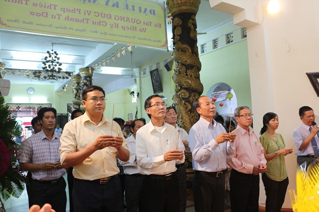 Trước đó chiều ngày 19/4/Bính Thân(25/5/2016) Ban Tổ Chức và Pháp quyến đón tiếp qúy cấp chính quyền đến dâng hương tưởng niệm có:Ông Trần Tấn Hùng-Phó Trưởng Ban Tôn giáo Chính phủ,ông Phạm Quang Đồng-Phó Giám đốc Sở Nội vụ-Trưởng Ban Tôn giáo TP.HCM,ông Vũ Mạnh Hải-Trưởng Ban Dân tộc Tôn giáo Ủy Ban MTTQVN TP.HCM,Đại diện Cục An ninh Xã hội Bộ Công An,Cán bộ Phòng PA.88 Công An TP.HCM,Đại diên Quận ủy,UBND,UBMTTQ Q.Phú Nhuận,Đảng ủy,UBND,UBMTTQ Phường 5,Đại diện các Tôn giáo bạn trong địa phương…