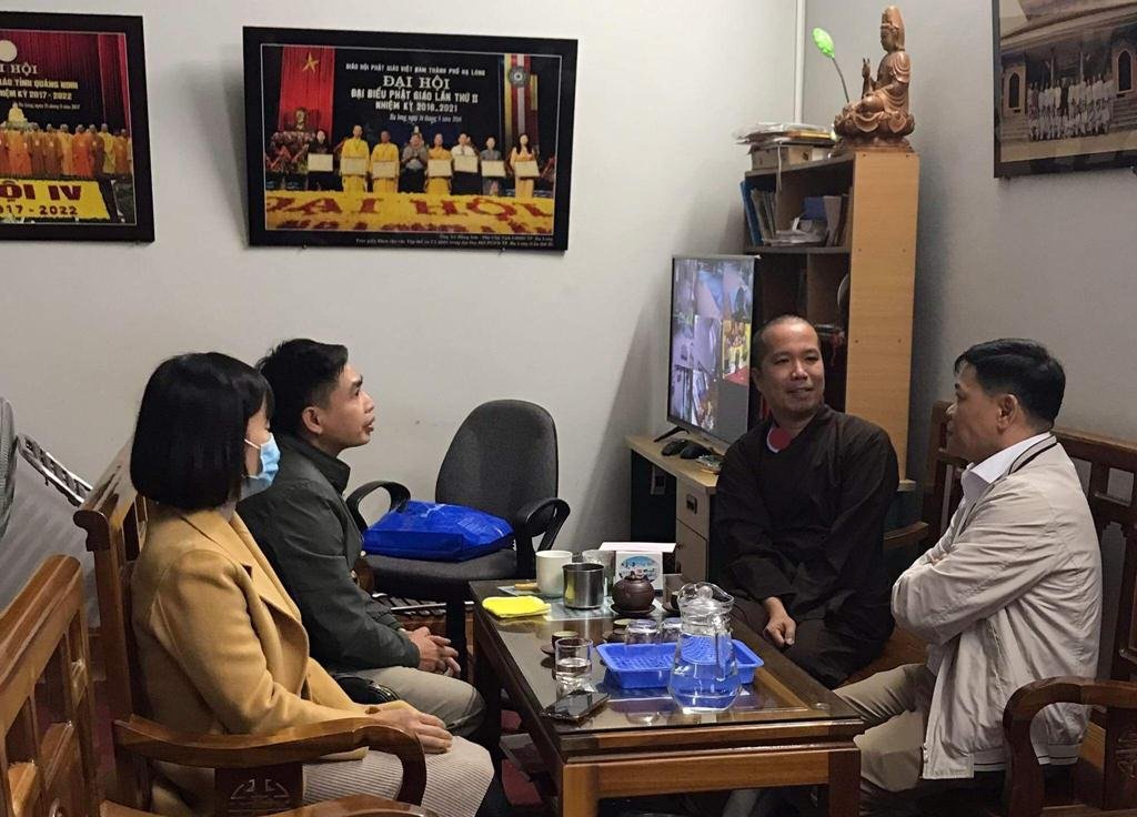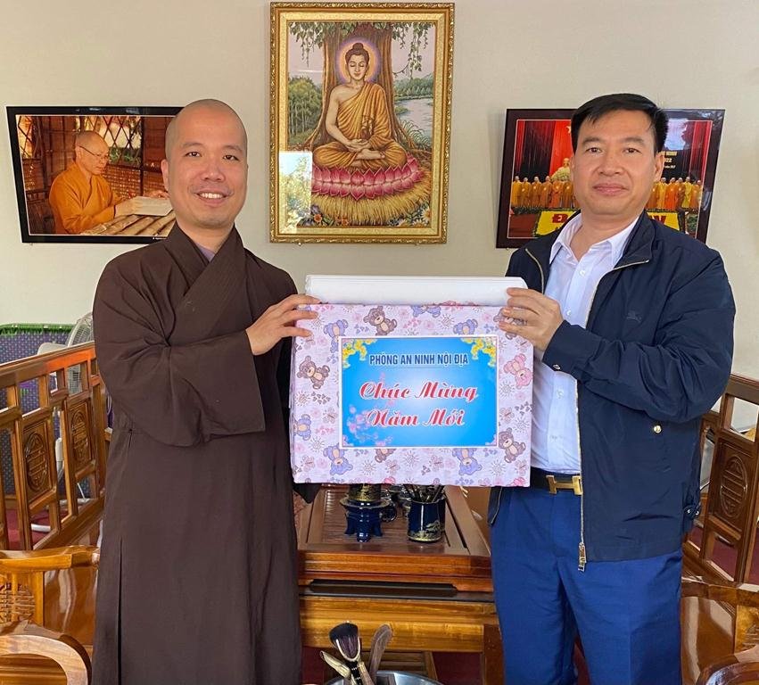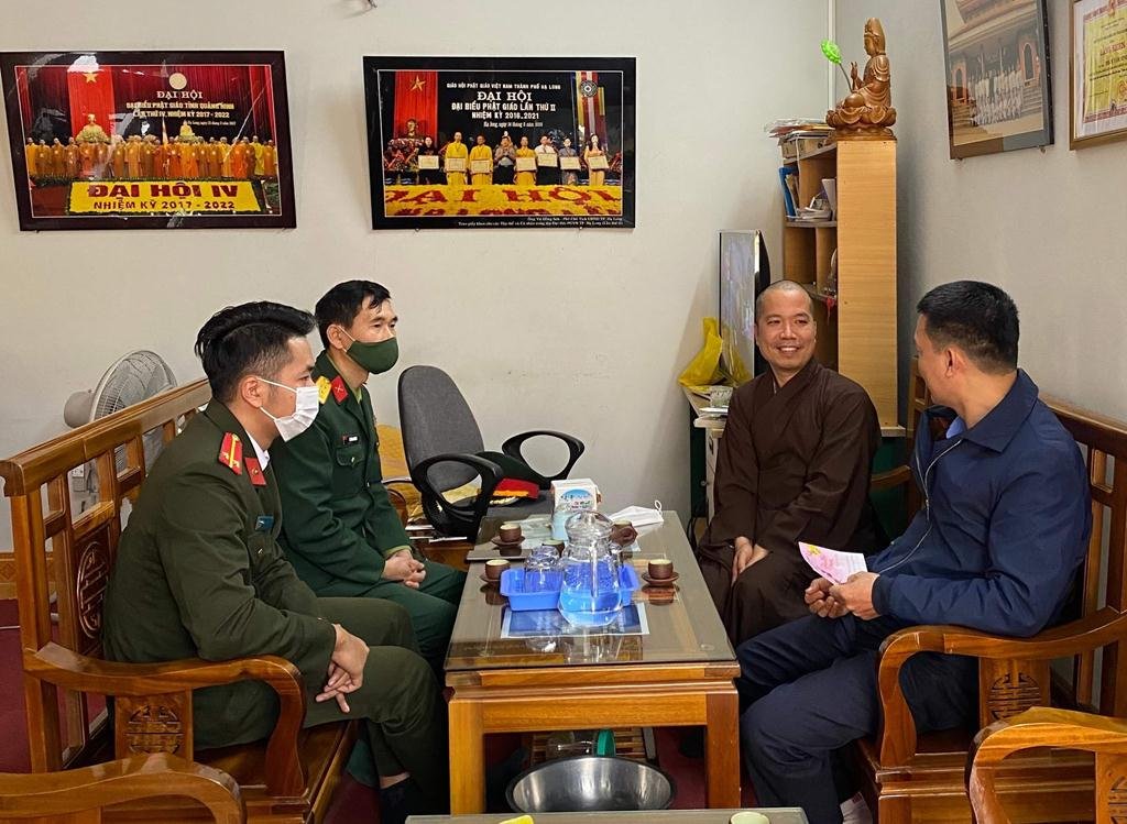 Tại chùa Tiêu Dao, lãnh đạo Ban Tôn Giáo tỉnh Quảng Ninh, Lãnh đạo phòng An Ninh Đối Nội Công an tỉnh Quảng Ninh, cùng lãnh đạo Ủy Ban MTTQVN thành phố Hạ Long và lãnh đạo UBND phường Hà Khẩu chúc Đại Đức trụ trì chùa Tiêu Dao cùng quý Phật tử đón một cái Tết cổ truyền của dân tộc thật vui tươi, an lành; Các lãnh đạo ban ngành liên quan cũng mong muốn chùa Tiêu Dao hoạt động tôn giáo tuân thủ nghiêm các quy định phòng, chống dịch bệnh Covid – 19; đồng thời vận động các Phật tử chung tay cùng với địa phương phòng chống, dịch bệnh Covid – 19 để nhân dân được vui xuân, đón một cái Tết vui tươi, an toàn. Dịp này, đoàn lãnh đạo các cơ quan ban ngành liên quan cũng tặng chùa một phần quà Tết, để chúc mừng đón một năm mới thật vui tươi, an lạc.