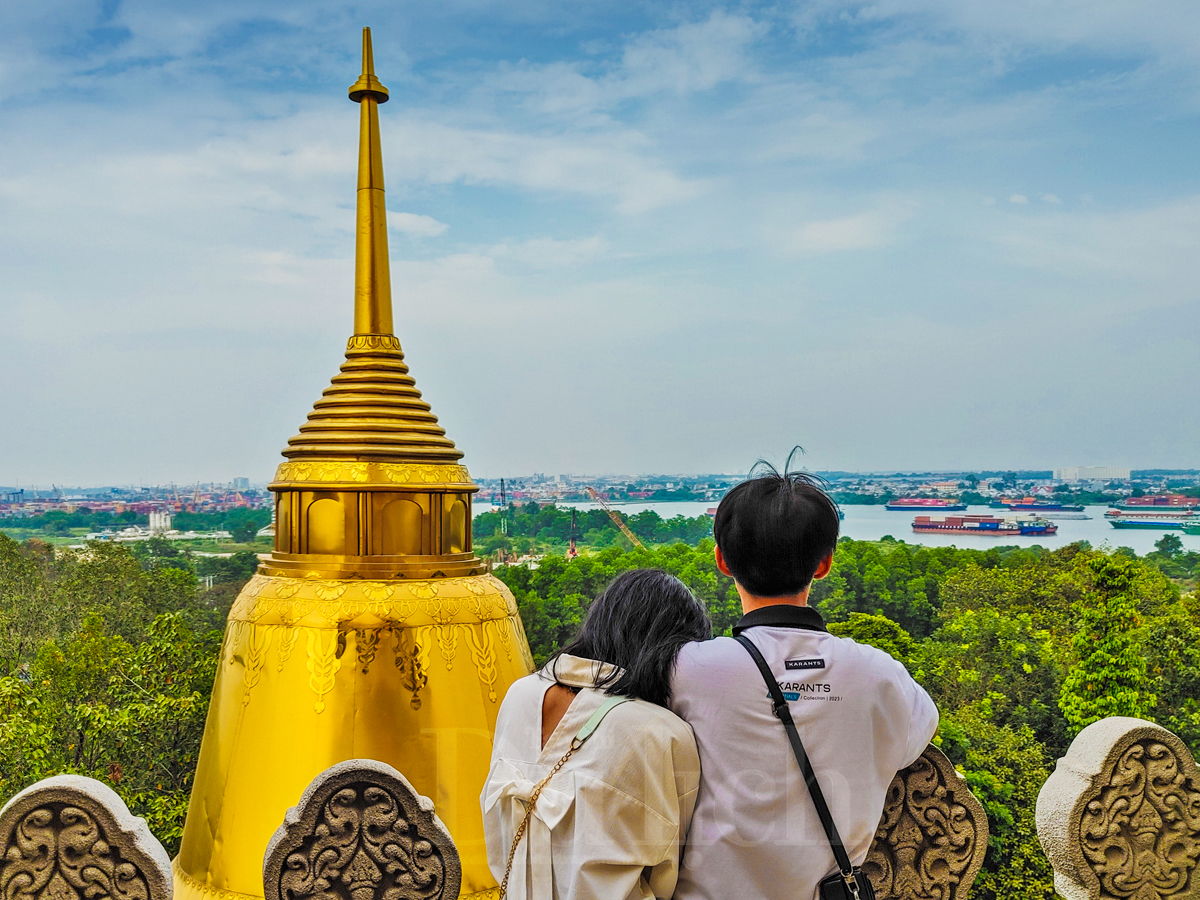 Bảo tháp Gotama Cetiya rộng trên 2.000 m², đường nét phảng phất dấu ấn nền văn minh Suvannabhumi cổ đại; nơi đây thờ Xá lợi Phật và các chư tăng.