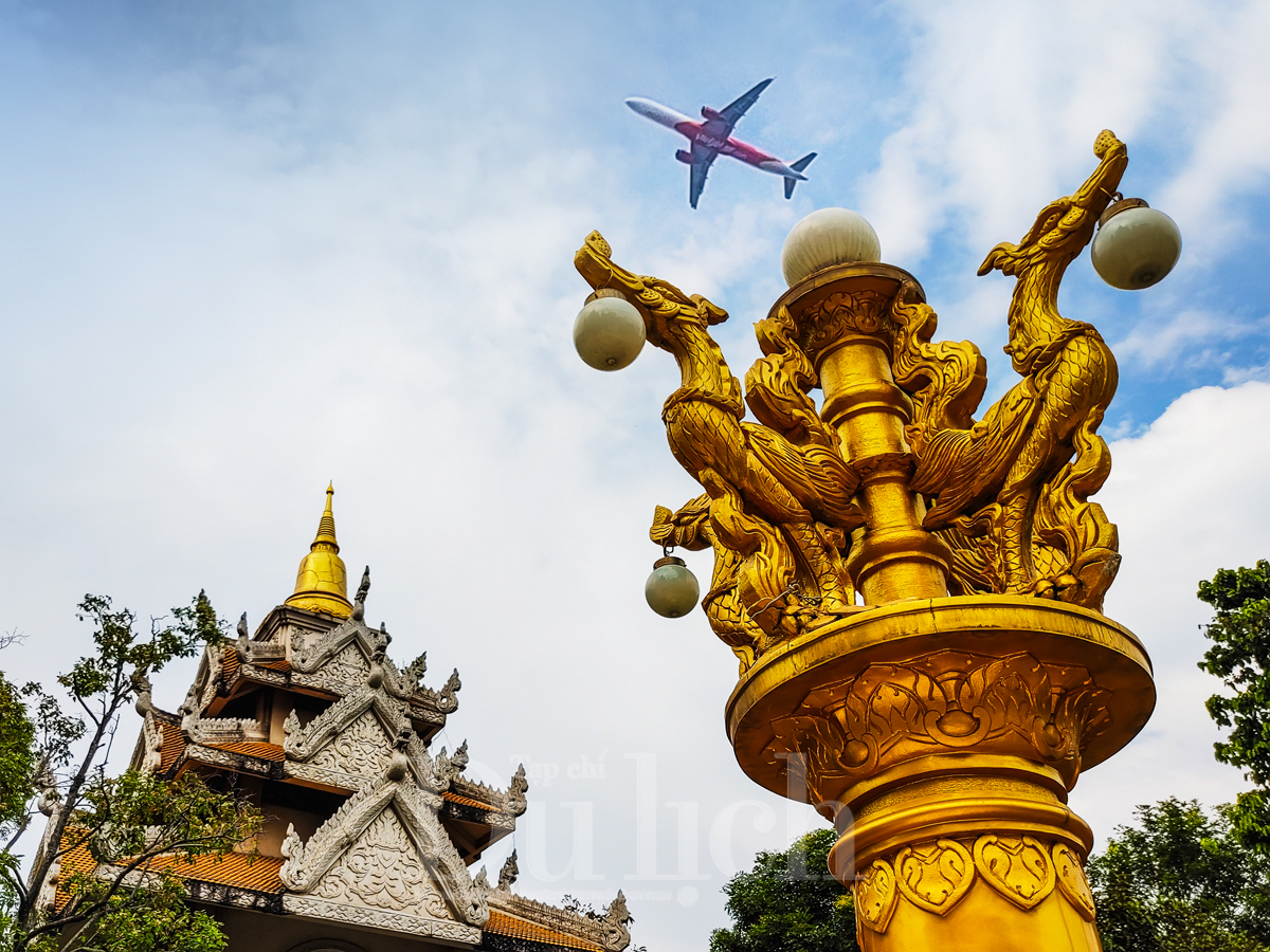Ngôi chùa nằm bên dưới hành lang bay của những chuyến phi cơ từ khắp các phương trời, nên cứ độ vài ba phút trên nền trời thăm thẳm, những cánh chim sắt lại phơi bụng trắng hếu, ầm ì vụt ngang.