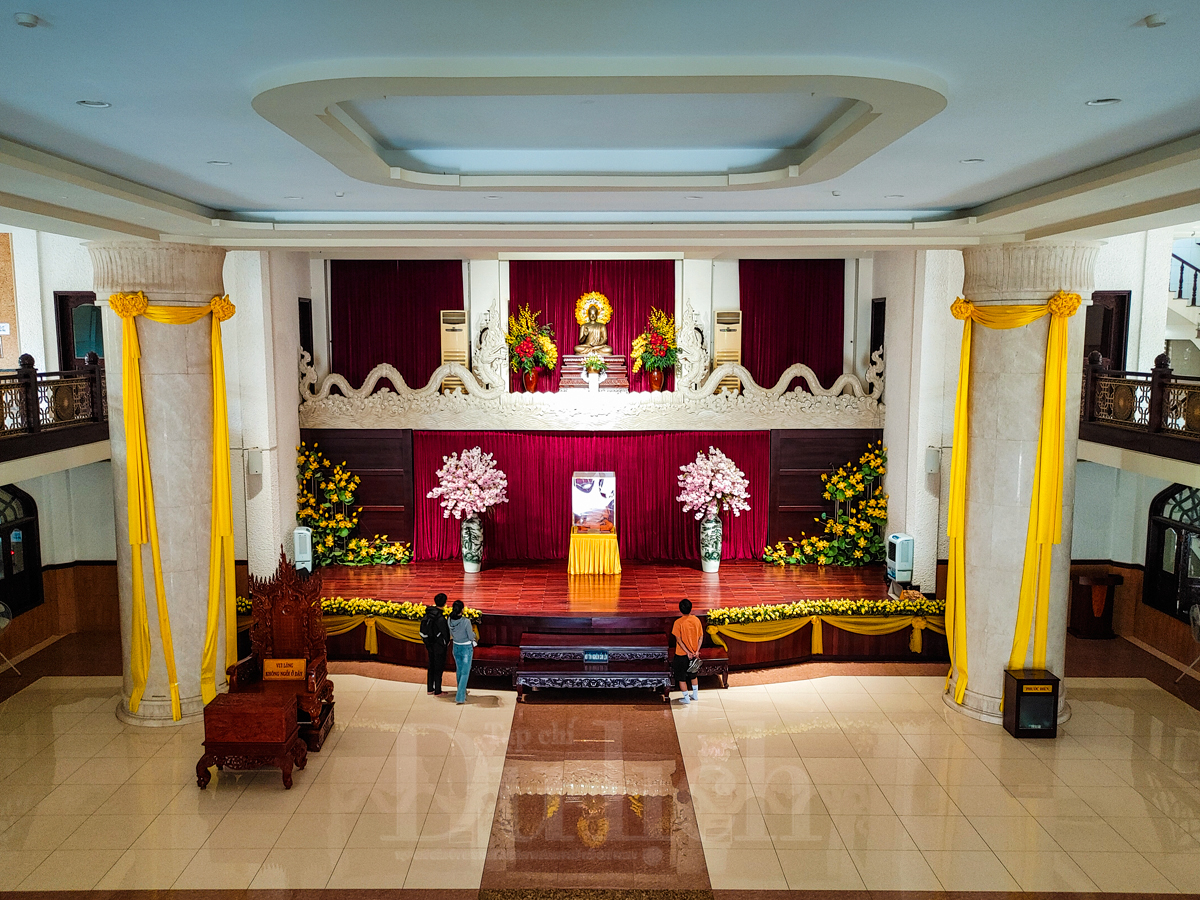Tầng trệt và tầng 2 là hội trường; tầng 3 và 4 là thiền đường, tôn thượng tượng Đức Phật Thích Ca trang nghiêm tĩnh tọa cùng chư vị đệ tử.