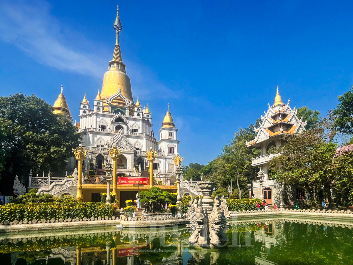Điểm nhấn là ngôi bảo tháp Gotama Cetiya với tháp mái hình quả chuông dát vàng được xây dựng từ năm 2007, sau 6 năm mới hoàn thành.