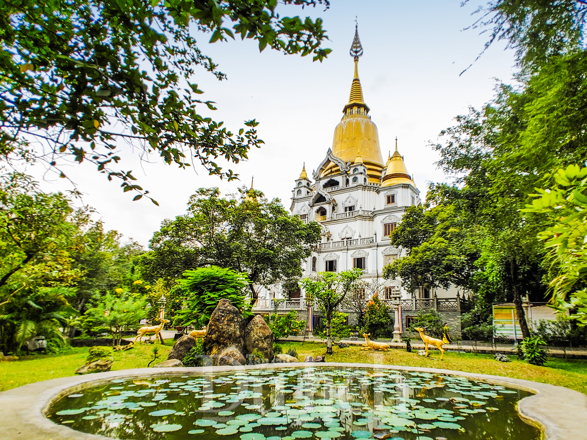 Ngôi chùa với tháp mái hình chuông óng ánh sắc màu vàng ươm trong nắng hoàng hôn dịu nhẹ ấy chỉ cách trung tâm TP khoảng độ 20km, chùa Bửu Long tọa lạc tại 81 Nguyễn Xiển, P. Long Bình, Q.9, khá tiện đường di chuyển theo tuyến metro Bến Thành – Suối Tiên.