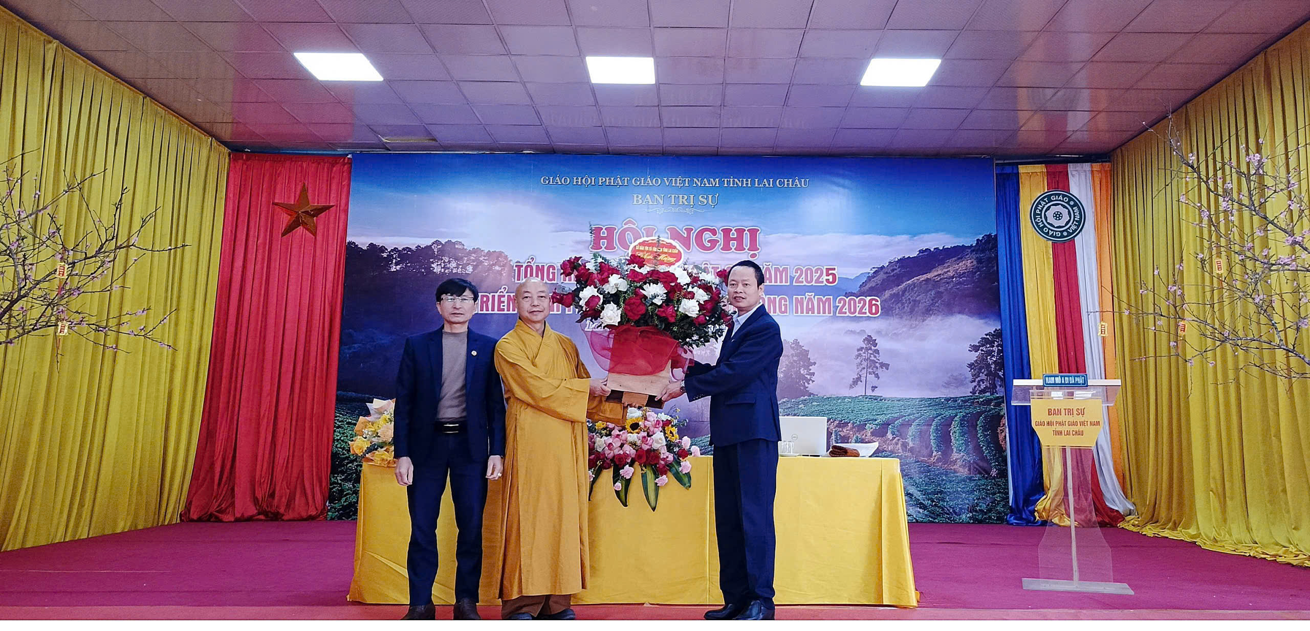 Tham dự Hội nghị có đại diện các cơ quan tỉnh Lai Châu: ông Lưu Hồng Phương – Phó Giám đốc Sở Văn hóa, Thể thao và Du lịch; ông Lò Thanh Tuyền – Phó Trưởng Phòng Tôn giáo; Thượng tá Mùa A Minh – Phó Trưởng Phòng An ninh Nội địa Công an tỉnh; đại diện các sở, ban, ngành liên quan; lãnh đạo phường Tân Phong, Đoàn Kết cùng đại diện Phật tử tiêu biểu trong toàn tỉnh.