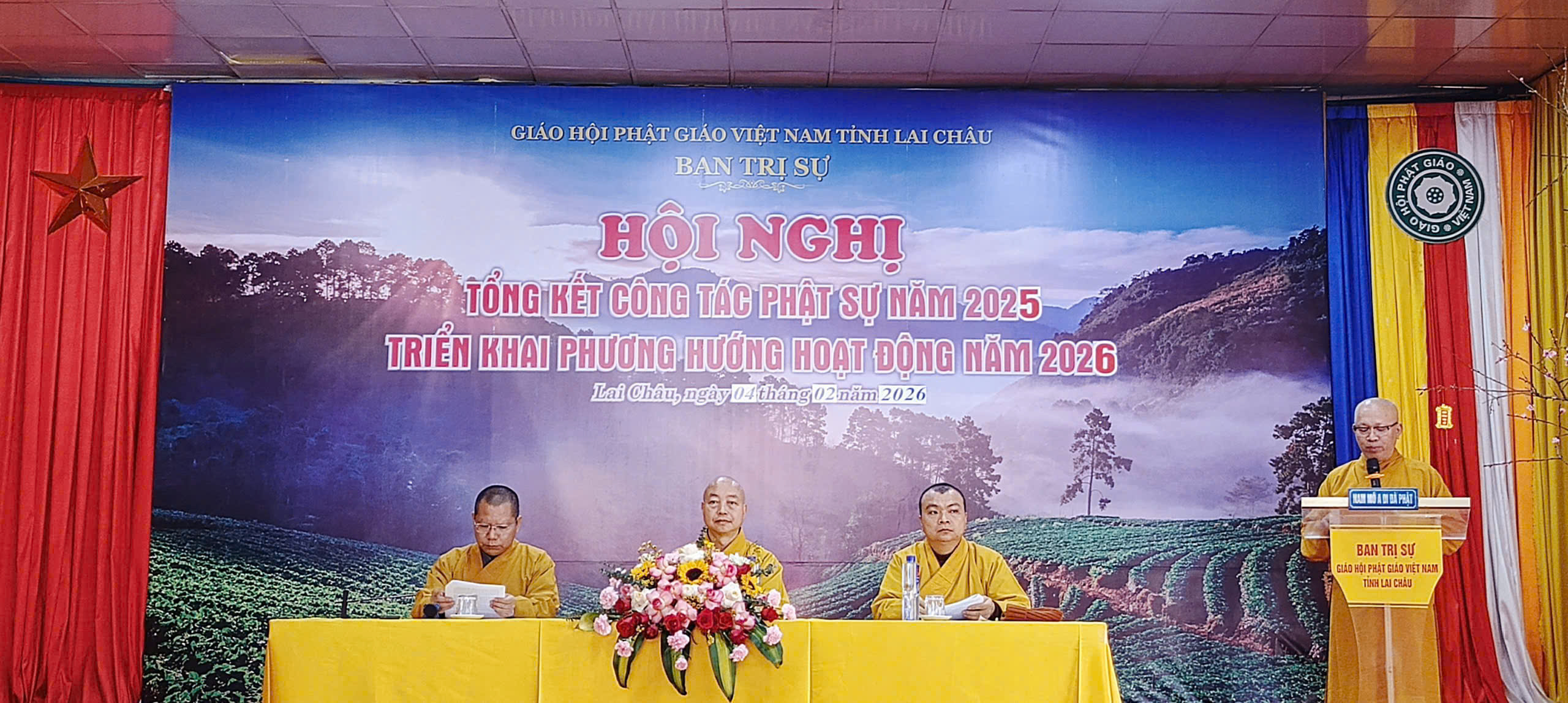 PTVN – Sáng ngày 04/02/2026, tại Chùa Linh Sơn – Trụ sở Giáo hội Phật giáo Việt Nam (GHPGVN) tỉnh Lai Châu, Ban Trị sự GHPGVN tỉnh đã long trọng tổ chức Hội nghị tổng kết công tác Phật sự năm 2025 và triển khai phương hướng hoạt động năm 2026.